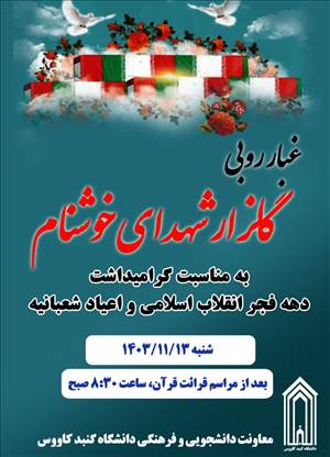 غبارروبی گلزار شهدای خوشنام دانشگاه گنبد کاووس به مناسبت گرامیداشت ایام الله دهه مبارک فجر و اعیاد شعبانیه
