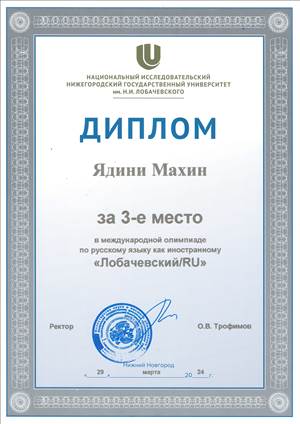 کسب مقام سوم المپیاد بینالمللی زبان روسی توسط دانشجوی دانشگاه گنبدکاووس
