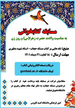 مسابقه کتابخوانی به مناسبت ولادت حضرت زهرا (س) و روز زن