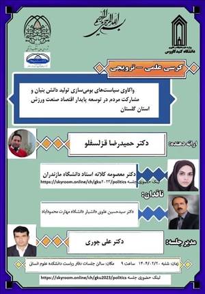 کرسی علمی ترویجی - واکاوی سیاست های بومی سازی تولید دانش بنیان و مشارکت مردم در توسعه پایدار اقتصاد صنعت ورزش استان گلستان