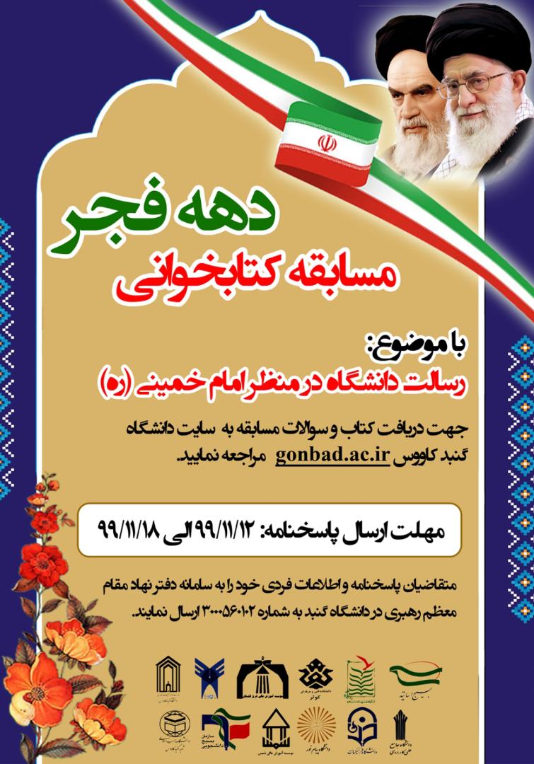 *لطفا پاسخ های خود را تا تاریخ 18/11/99 به سامانه پیامکی دفتر نهاد مقام معظم رهبری در دانشگاه گنبد کاووس به شماره 3000560102 به همراه مشخصات( نام و نام خانوادگی، شماره تماس ، دانشگاه محل خدمت ) ارسال نمایید.
