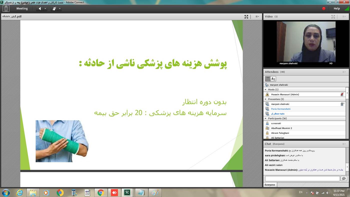 "نشست تخصصی بیمه و بازنشستگی ویژه کارکنان و اعضای هیات علمی" به صورت مجازی در روز چهارشنبه 25 فروردین 1400 در ساعت 11:30 برگزار شد.