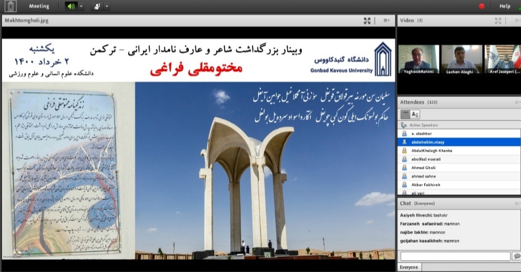 دکتر طهماسبی در ادامه بیان داشت: اردیبهشت 1400 مصادف با 288 اُمین سالروز تولد شاعر و عارف نامدار ایرانی - ترکمن، مختومقلی فراغی است و از آنجایی که یکی از رسالتهای اصلی دانشگاه توجه به مسائل فرهنگی و اجتماعی است به همت همکاران عزیزمان در واحد معاونت فرهنگی و اجتماعی و دانشکده علوم انسانی و علوم ورزشی، این مراسم تدارک دیده شده است تا بتوانیم یاد و خاطره این شاعر بزرگ را گرامی بداریم. البته در سالهای گذشته نیز داشگاه گنبد کاووس مراسمهای مختلفی در خصوص گرامیداشت این شاعر بزرگ ایرانی - ترکمن برگزار نموده است.
