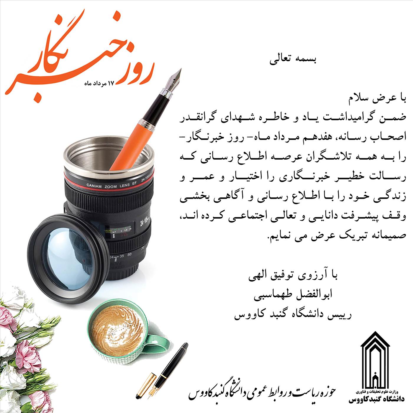 پیام تبریک رییس دانشگاه گنبدکاووس به مناسبت 17 مرداد، روز خبرنگار