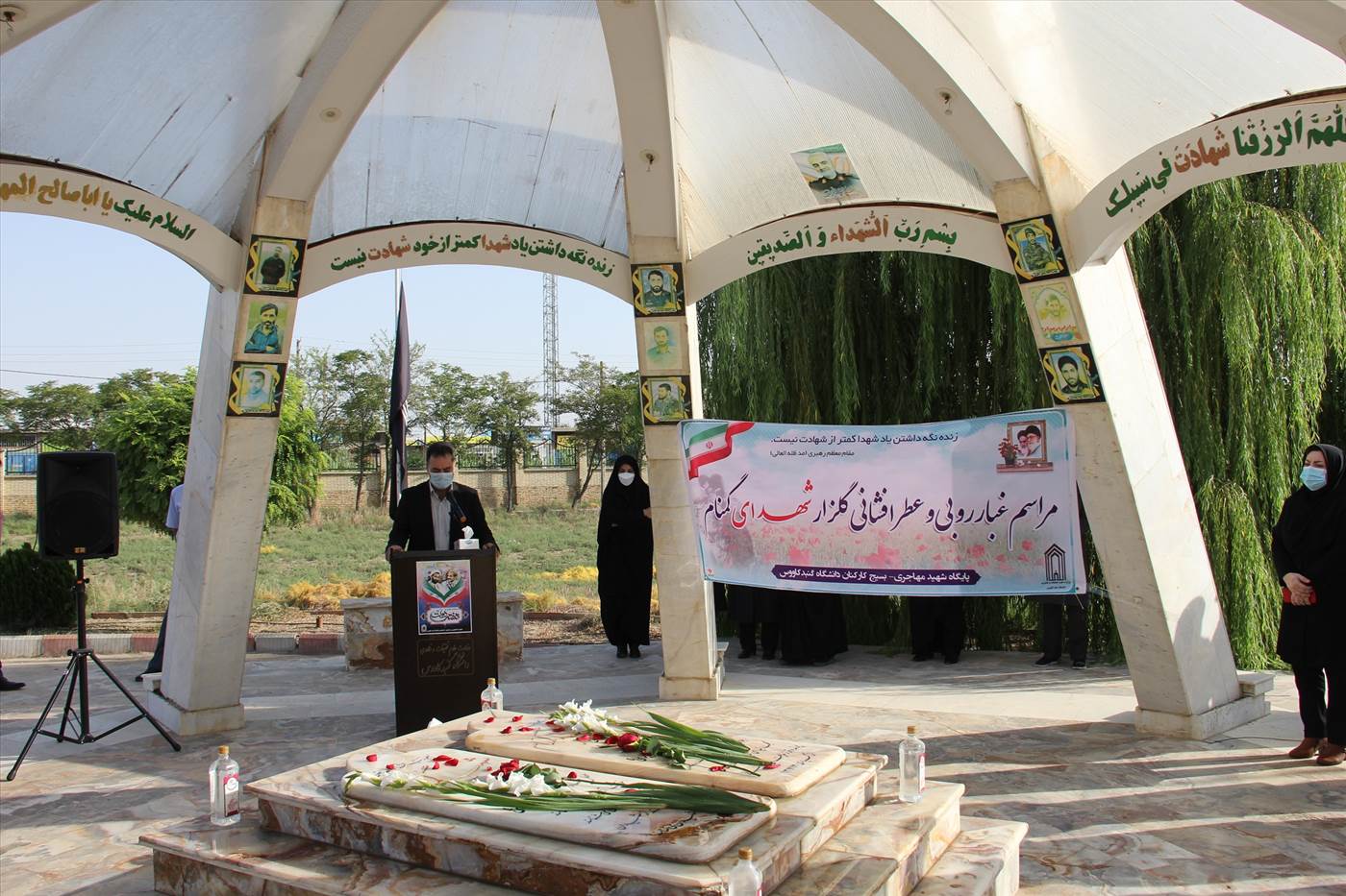 گزارش تصویری مراسم غبارروبی و عطر افشانی گلزار شهدای خوشنام دانشگاه گنبدکاووس به مناسبت هفته دولت