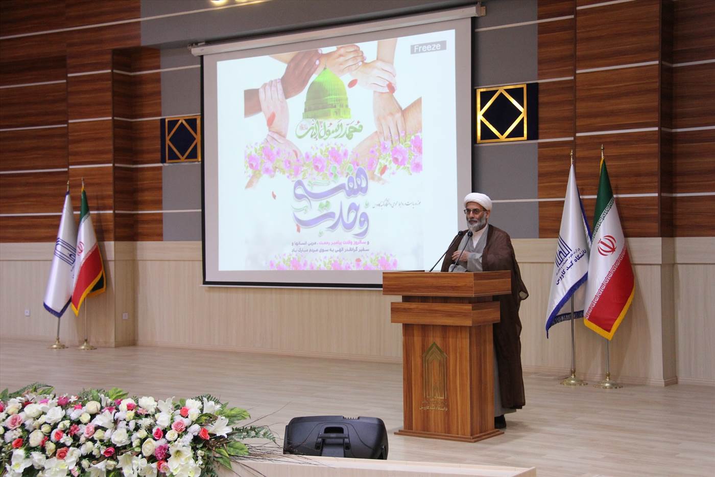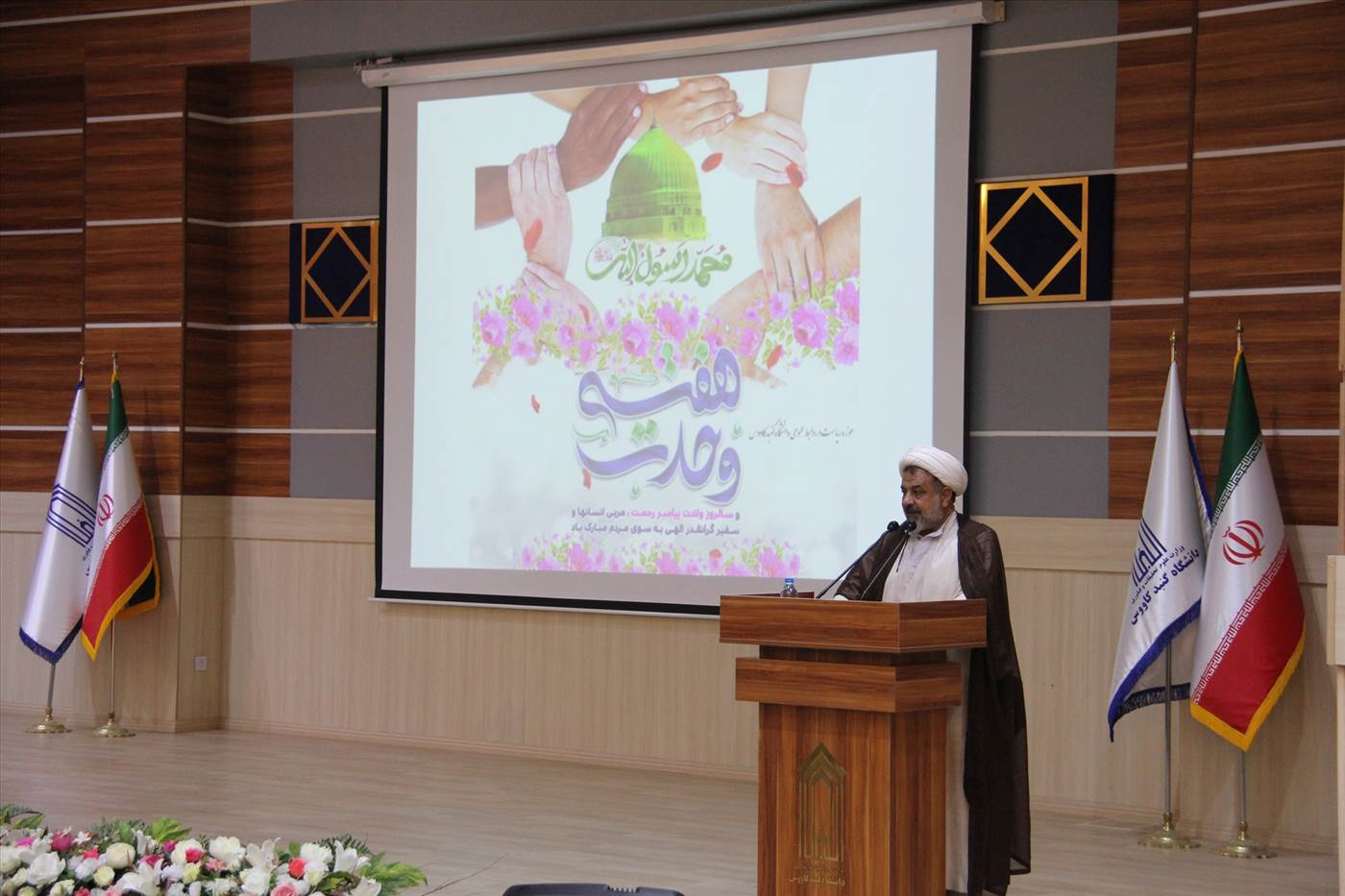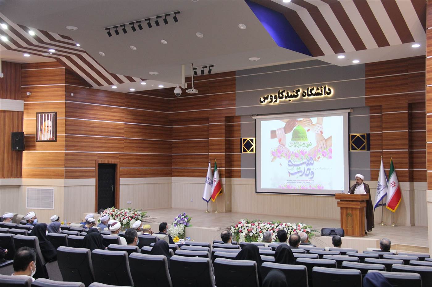 روز سه شنبه 27 مهر 1400 مراسم گرامیداشت هفته وحدت در سالن آمفی تئاتر حکمت دانشکده علوم انسانی دانشگاه گنبدکاووس برگزار شد. این مراسم با حضور مسئولین دانشگاه گنبدکاووس، حجت الاسلام والمسلمین ترابی، امام جمعه محترم شهرستان گنبدکاووس ، حاج آخوند خوجملی، امام جمعه محترم نگینشهر و طلاب و مدرسین حوزه علمیه با رعایت پروتکل های بهداشتی بصورت حضوری و همچنین از طریق غیر حضوری و مجازی برگزار گردید.