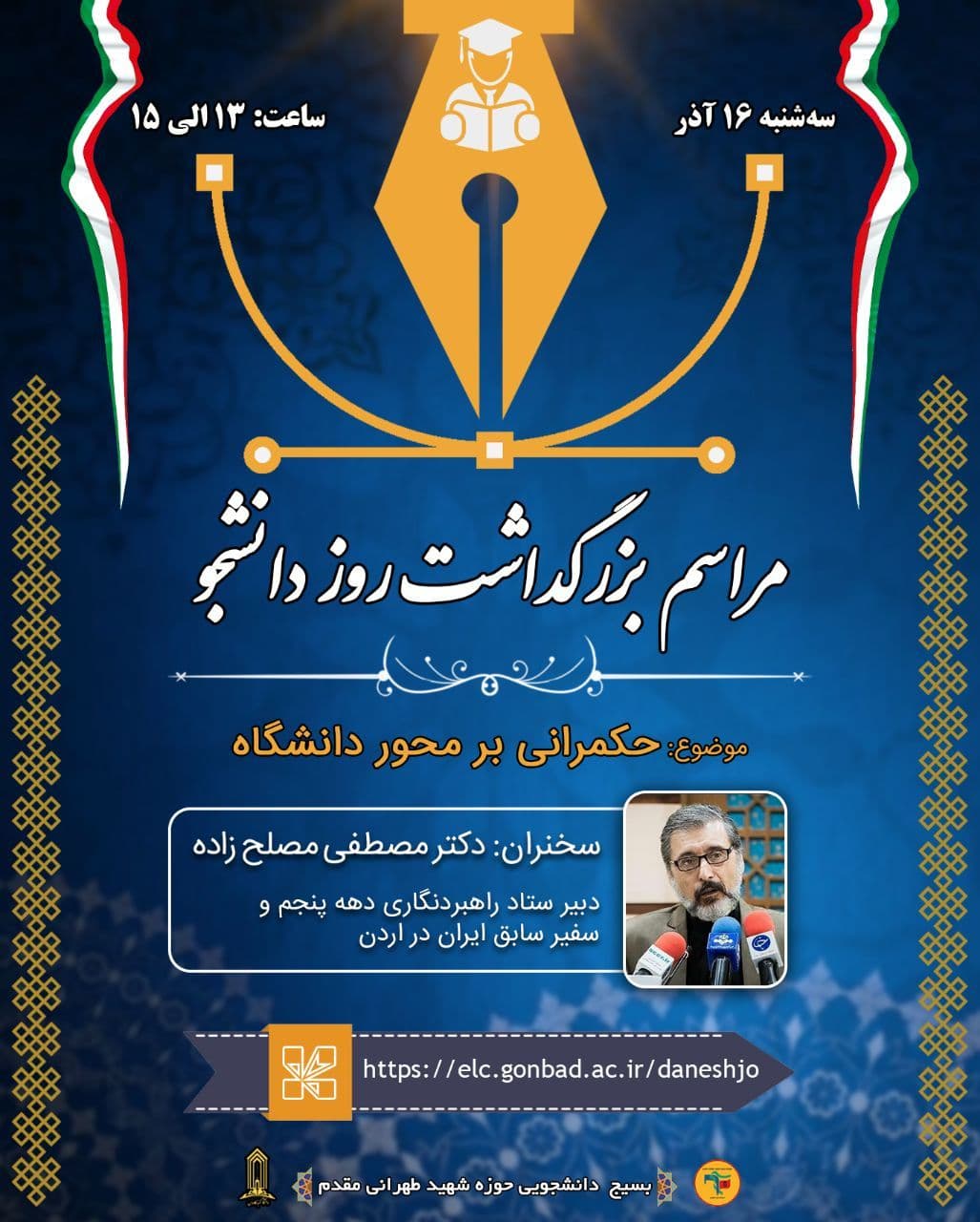 برگزاری همایش روز دانشجوباموضوع حکمرانی بر محور دانشگاه،با سخنرانی دکتر مصطفی مصلح زاده،سفیر اسبق ایران در اردن