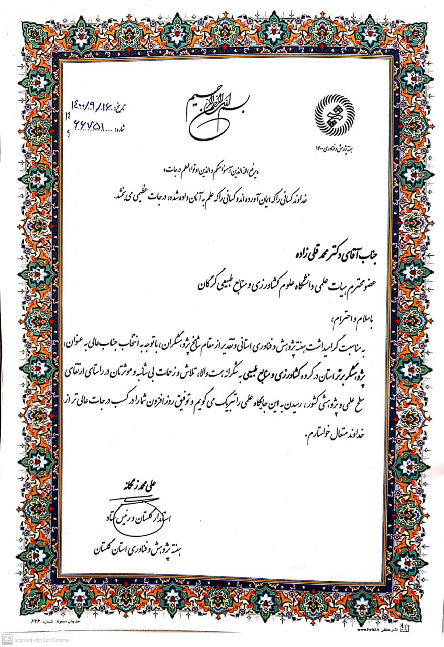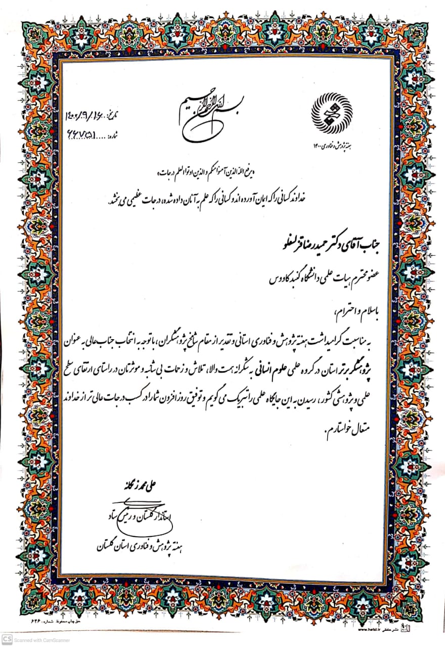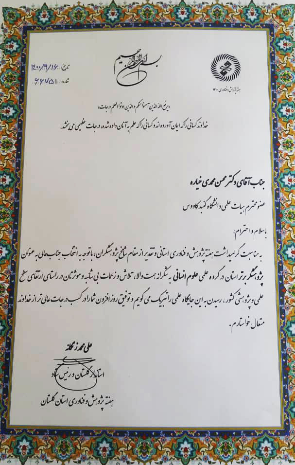 در آئین اختتامیه هفته پژوهش و فناوری استان: پژوهشگران و فناوران برتر استان معرفی و از آنان تجلیل شد در این مراسم 3 عضو هیات علمی دانشگاه گنبدکاووس موفق به کسب رتبه پژوهشگر برتر استان گلستان شدند.