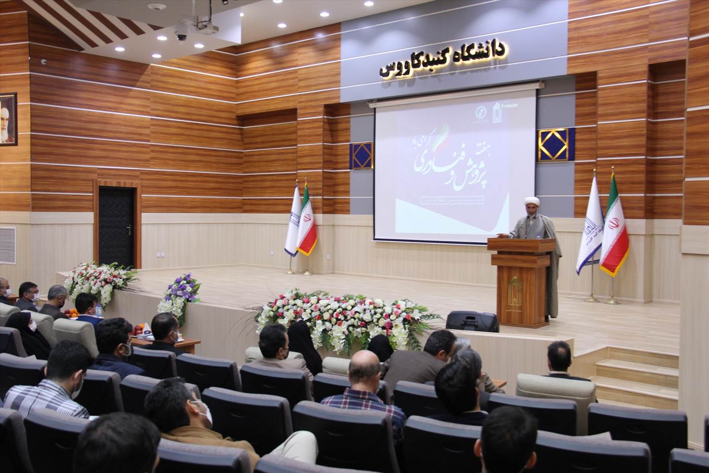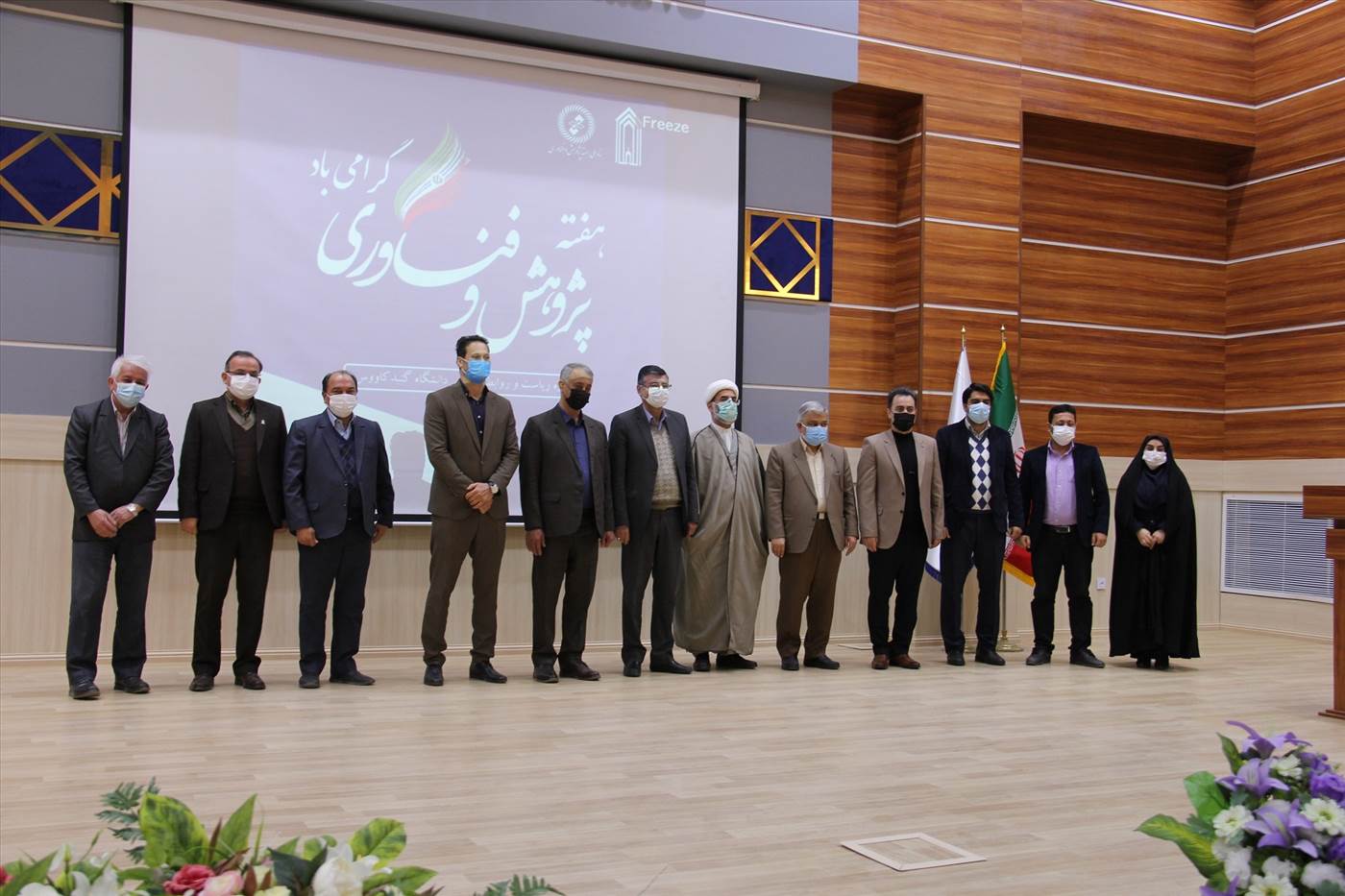 مراسم بزرگداشت هفته پژوهش و فناوری و تجلیل از پژوهشگران برتر دانشگاه با حضور مهندس کریمی، معاون استاندار و فرماندار ویژه شهرستان، دکتر مهاجر، رییس سازمان جهاد کشاورزی استان گلستان، دکتر طهماسبی، ریاست دانشگاه، حجت الاسلام والمسلمین رجبی مسئولین نهاد نمایندگی مقام معظم رهبری در دانشگاه و برخی مسئولین و مدیران شهرستان گنبدکاووس و همکاران دانشگاهی در سالن حکمت دانشکده علوم انسانی و علوم ورزشی برگزار شد.