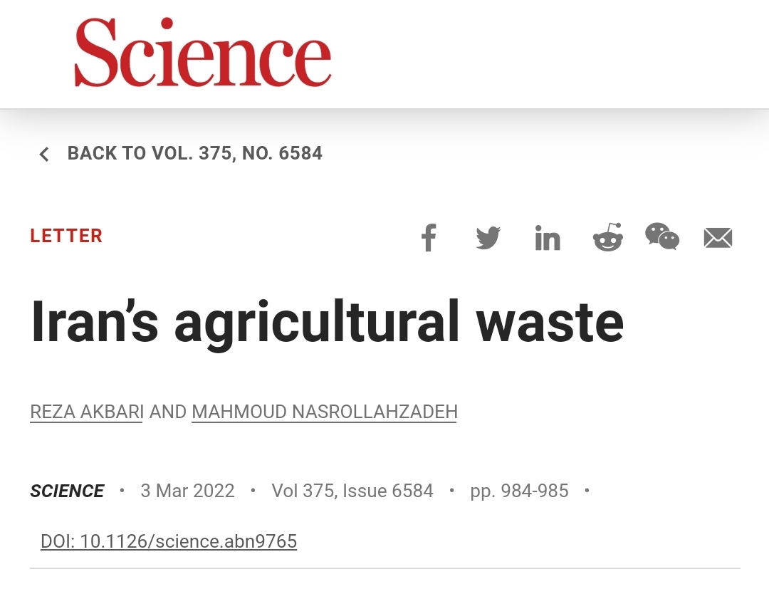 جناب آقای دکتر رضا اکبری عضو هیات علمی گروه شیمی دانشگاه گنبدکاووس با همکاری جناب آقای دکتر محمود نصرالله زاده عضو هیات علمی گروه شیمی دانشگاه قم موفق به چاپ مقاله ای با عنوان Iran's agricultural waste در مجله Science با ضریب تاثیر ۴۷.۷۳ شدند. 🌷حوزه ریاست و روابط عمومی دانشگاه این موفقیت بزرگ را به ایشان و خانواده دانشگاه گنبدکاووس تبریک عرض مینماید.