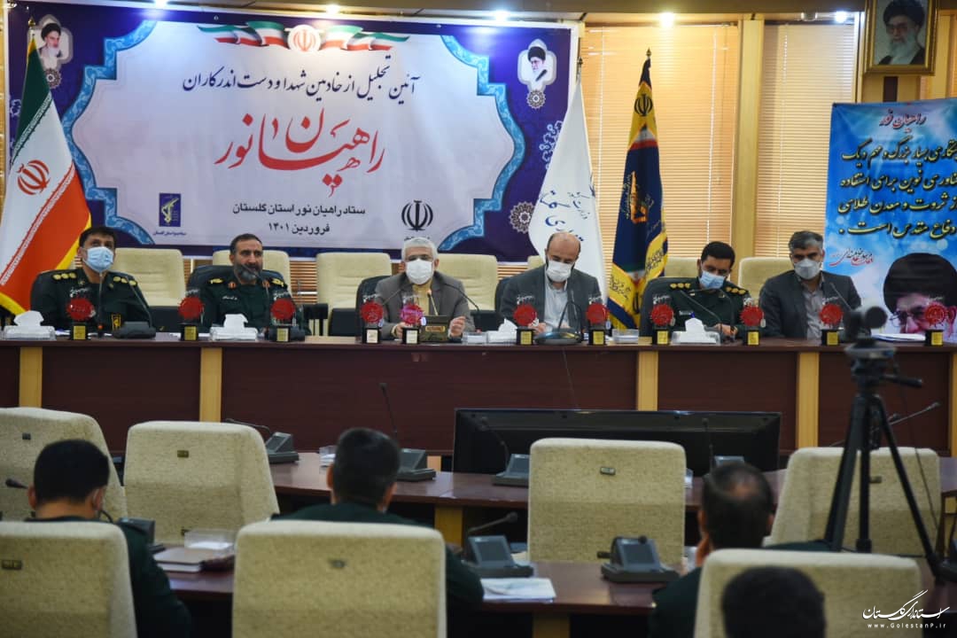 در این مراسم که با حضور دکتر علی محمد زنگانه، استاندار گلستان و سرتیپ دوم علی ملک شاهکوهی، فرمانده سپاه نینوا استان در محل سالن جلسات استانداری گلستان برگزار شد، از زحمات دست اندرکاران در برگزاری اردو های راهیان نور 1400 با اهداء لوح سپاس و تندیس خادم الشهدا تقدیر به عمل آمد.