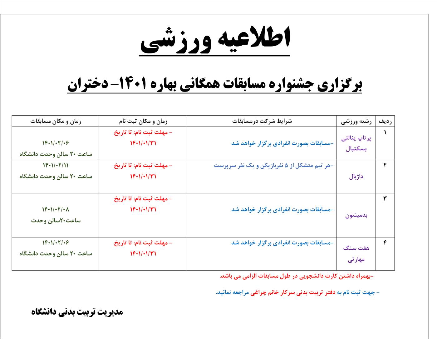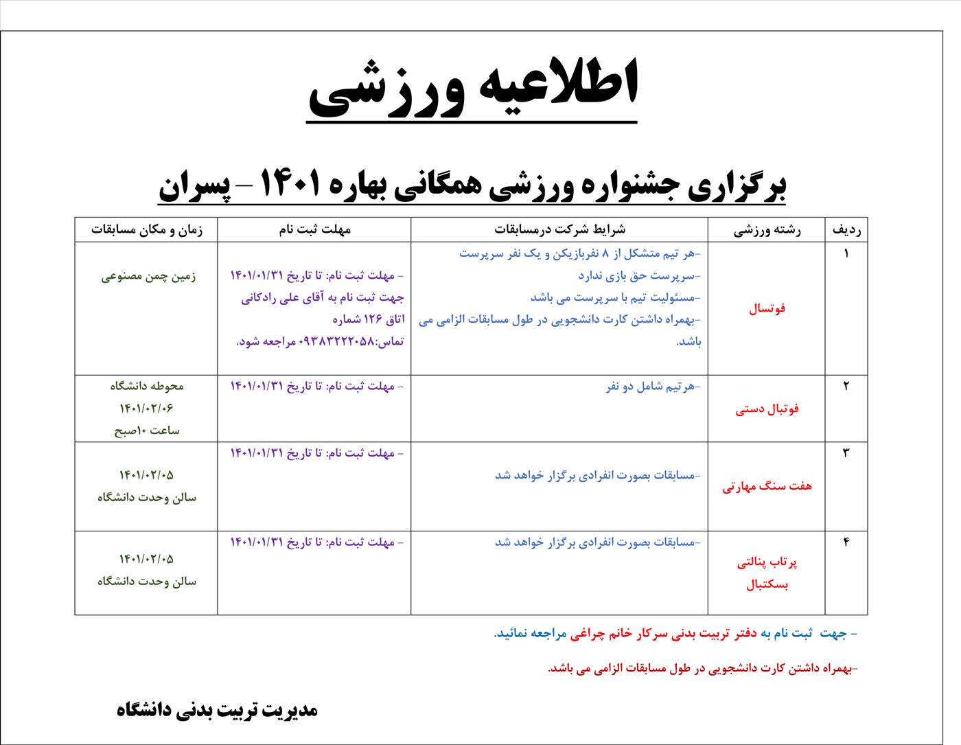 جشنواره مسابقات ورزشی بهار 1401 دانشجویان دختر و پسر