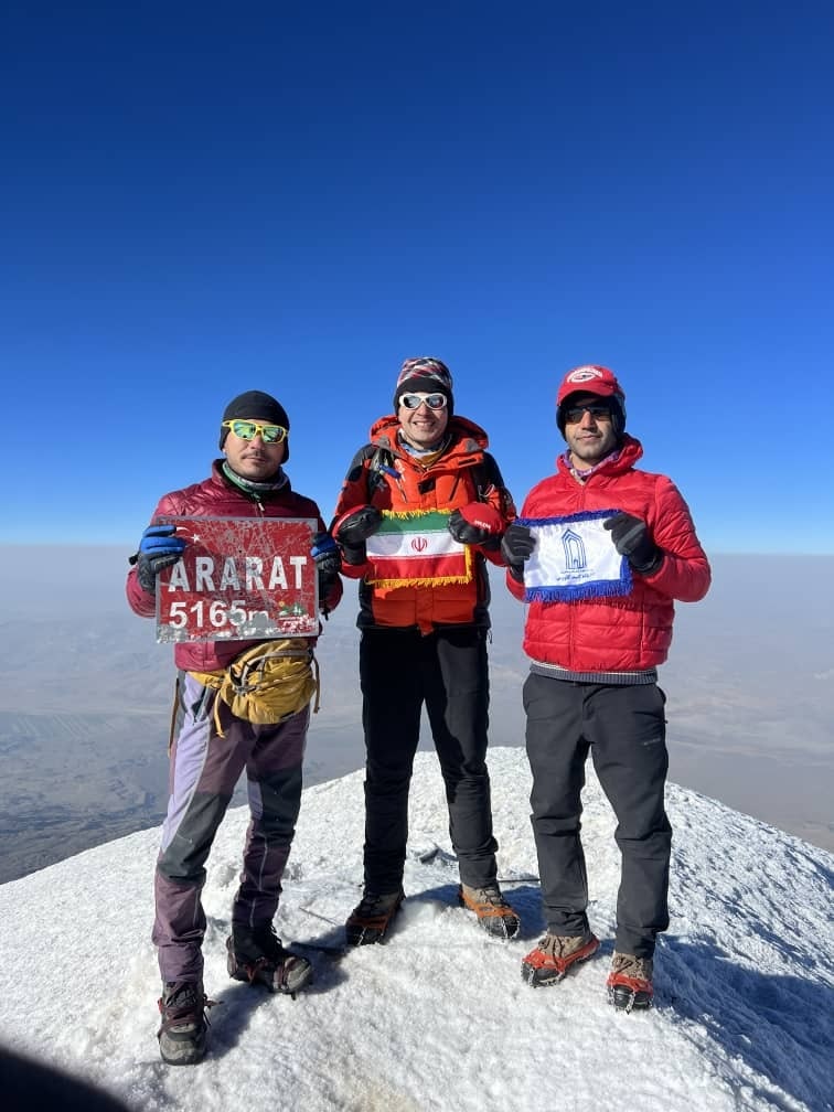 به گزارش روابط عمومی دانشگاه: آقایان مسعود قره جانلو، مهدی ارجمند و یحیی مصطفی لو اعضای تیم کوهنوردی دانشگاه گنبدکاووس موفق شدند به قله ۵۱۶۵ متری آرارات ترکیه صعود کنند.