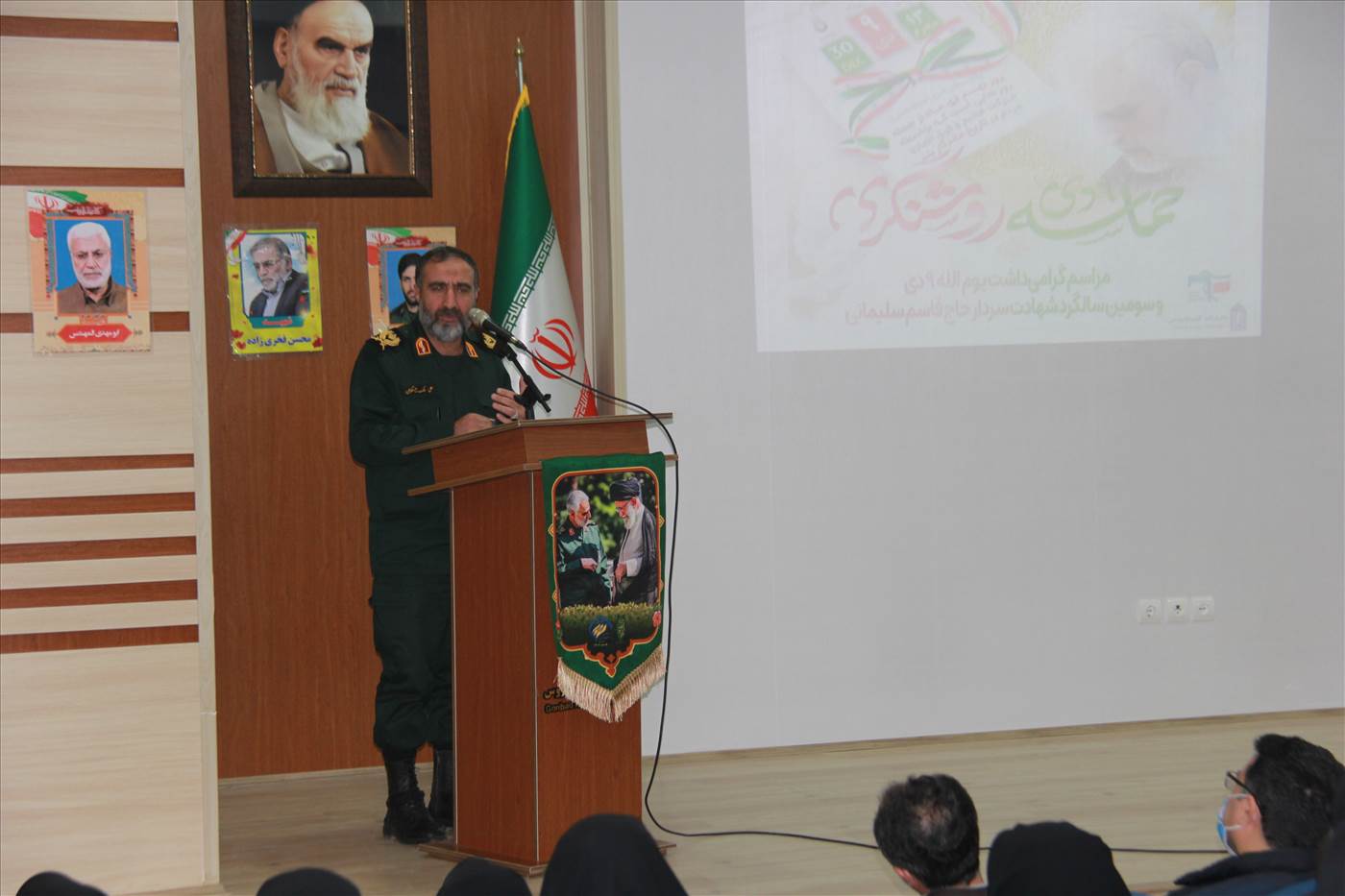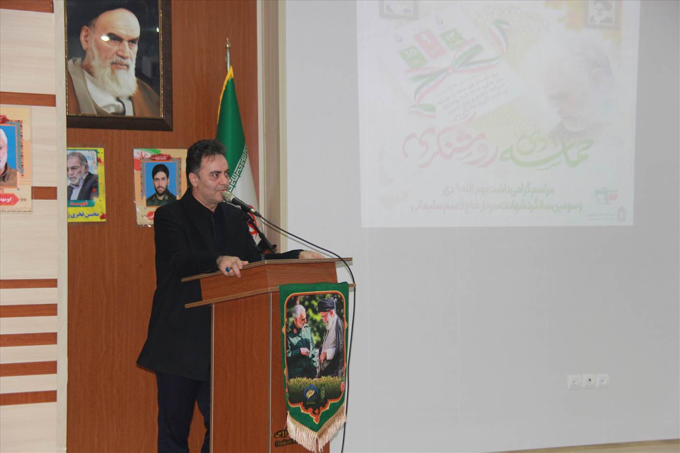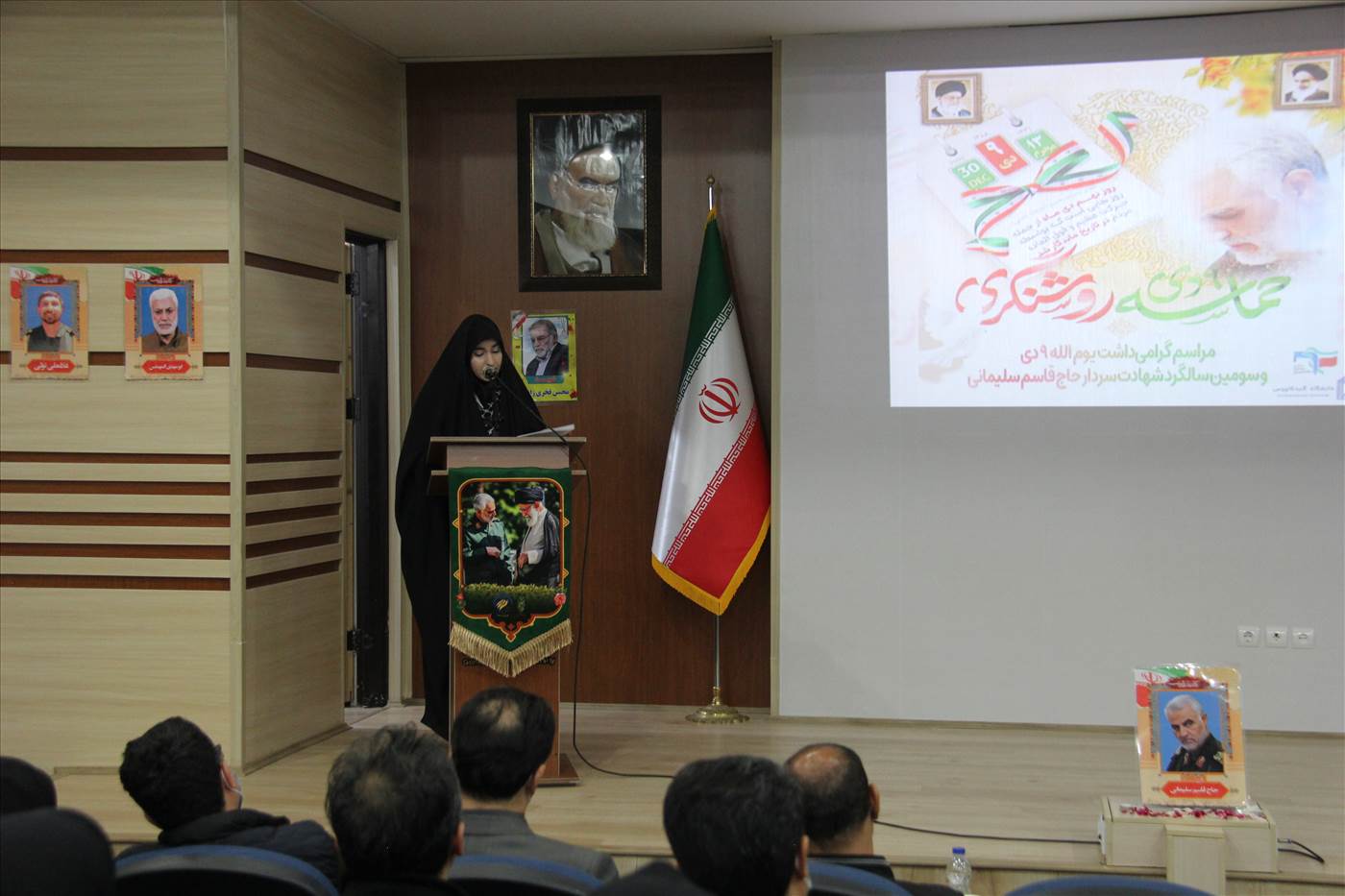 مراسم گرامیداشت یوم الله 9 دی و سومین سالگرد شهادت سردار حاج قاسم سلیمانی در روز یکشنبه مورخ 1401/10/11 در محل سالن آمفی تئاتر شهید چمران دانشکده علوم پایه، فنی و مهندسی برگزار گردید. سخنران این مراسم سردار ملک شاهکویی فرمانده سپاه نینوا استان گلستان بود.