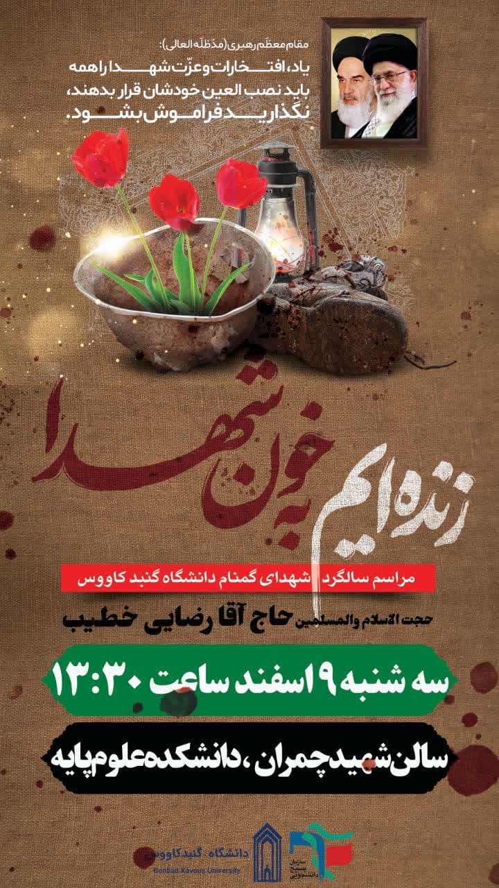 💠دعوتنامه ای از شهدای دانشگاه گنبدکاووس به دانشجویان و اساتید و کارکنان دانشگاه.
