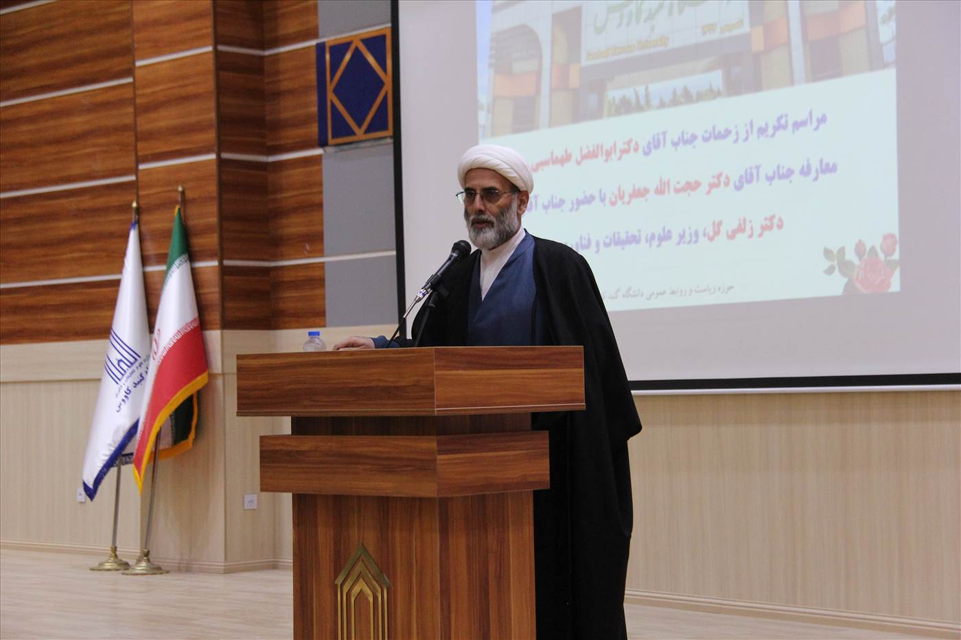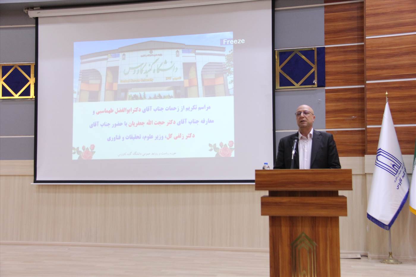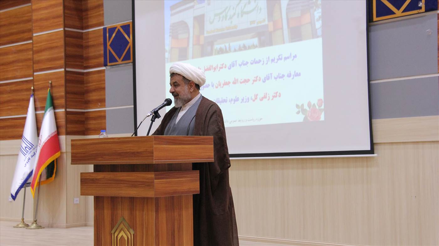 مراسم تکریم از زحمات جناب آقای دکتر ابوالفضل طهماسبی و معارفه جناب آقای دکتر حجت الله جعفریان سرپرست دانشگاه گنبدکاووس با حضور وزیر محترم علوم، تحقیقات و فناوری (جناب آقای دکتر زلفیگل) در روز دوشنبه مورخ 1401/12/22 در سالن حکمت دانشکده علوم انسانی و علوم ورزشی برگزار گردید. به گزارش روابط عمومی دانشگاه گنبدکاووس در این مراسم با تقدیر از دکتر ابوالفضل طهماسبی رئیس سابق دانشگاه گنبدکاووس، حجت الله جعفریان به عنوان سرپرست جدید این مرکز آموزش عالی معرفی شد.