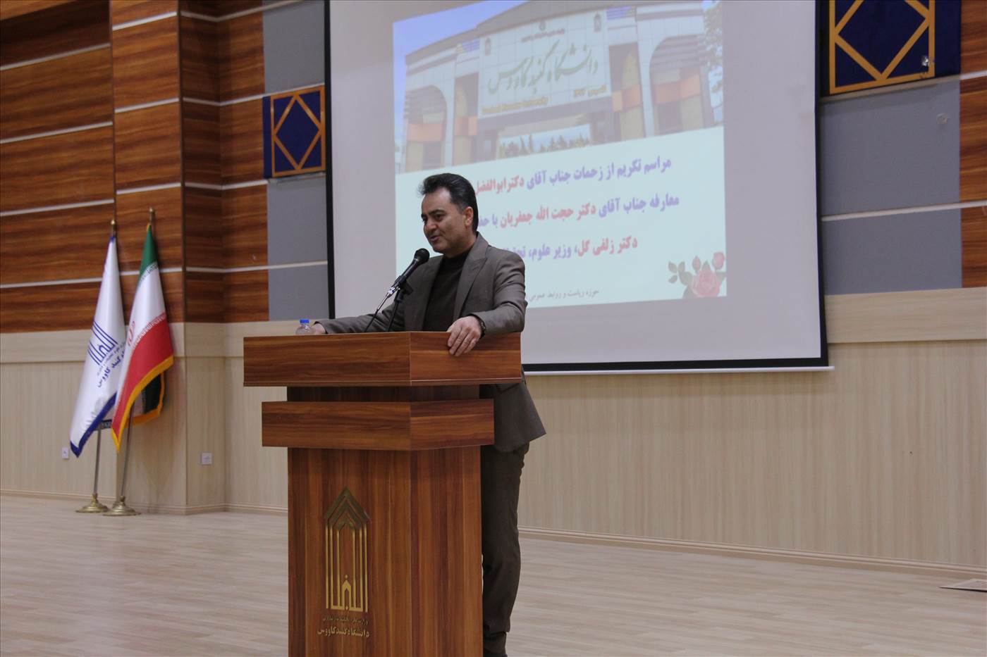 مراسم تکریم از زحمات جناب آقای دکتر ابوالفضل طهماسبی و معارفه جناب آقای دکتر حجت الله جعفریان سرپرست دانشگاه گنبدکاووس با حضور وزیر محترم علوم، تحقیقات و فناوری (جناب آقای دکتر زلفیگل) در روز دوشنبه مورخ 1401/12/22 سالن حکمت دانشکده علوم انسانی و علوم ورزشی برگزار گردید.