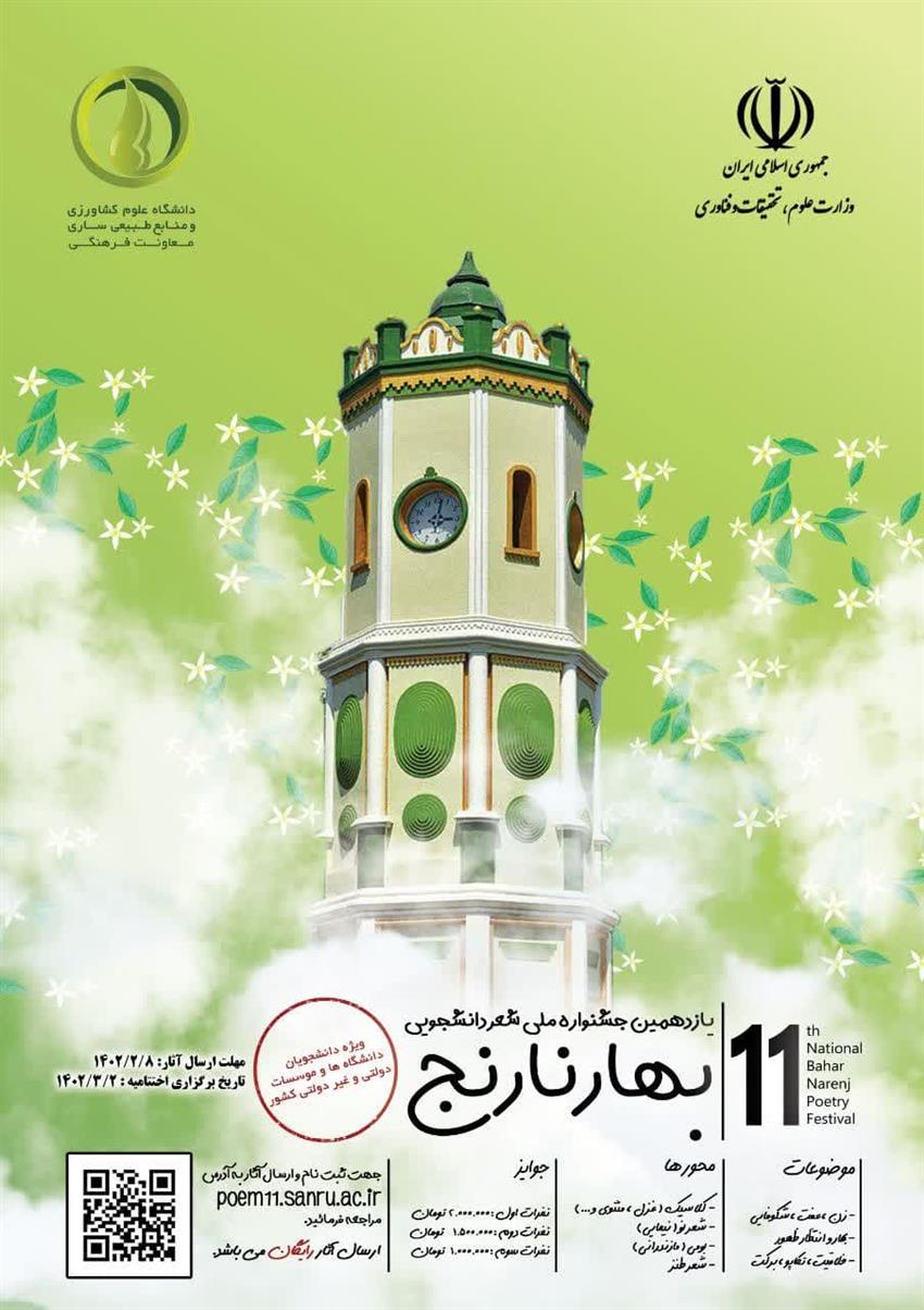یازدهمین جشنواره شعر دانشجویی بهار نارنج ویژه دانشگاه علوم کشاورزی و منابع طبیعی ساری