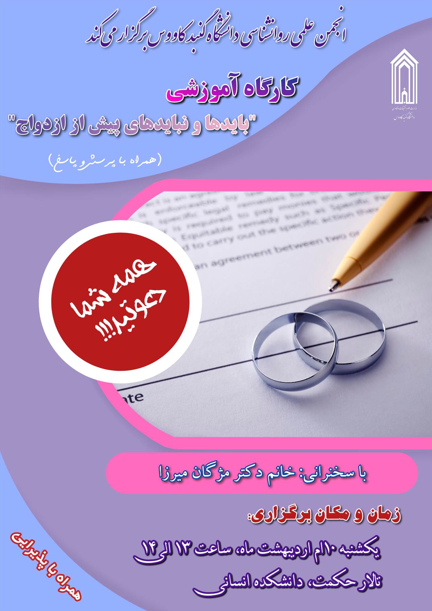 همایش" بایدها و نبایدهای پیش از ازدواج" توسط انجمن علمی و دانشجویی روانشناسی