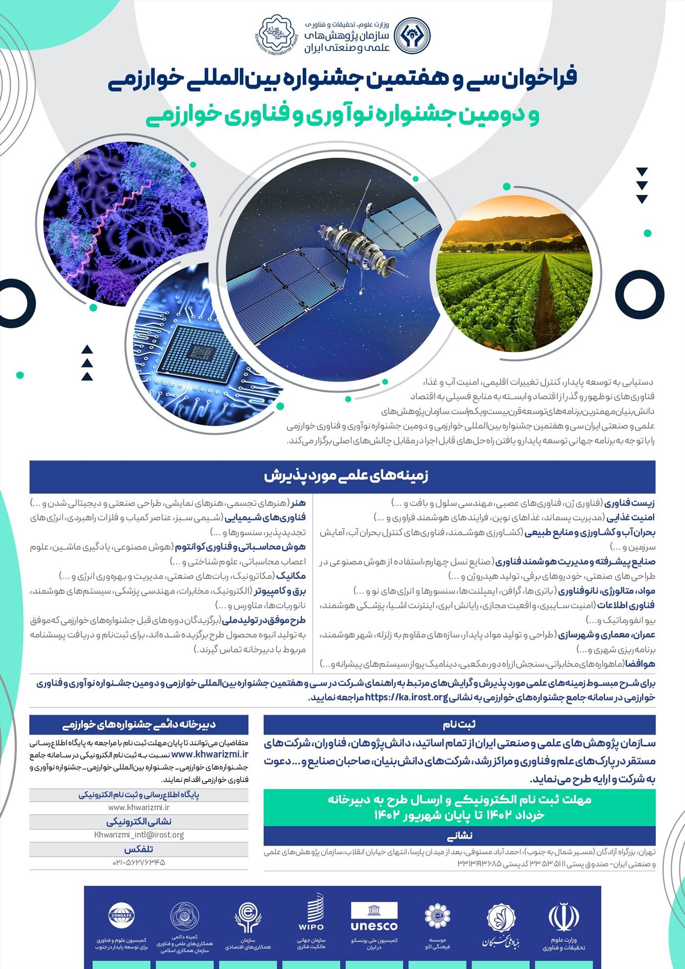اطلاعات بیشتر از طریق وب سایت دبیرخانه جشنواره هاي خوارزمی قابل دسترسی است: http://khwarizmi.ir/sections