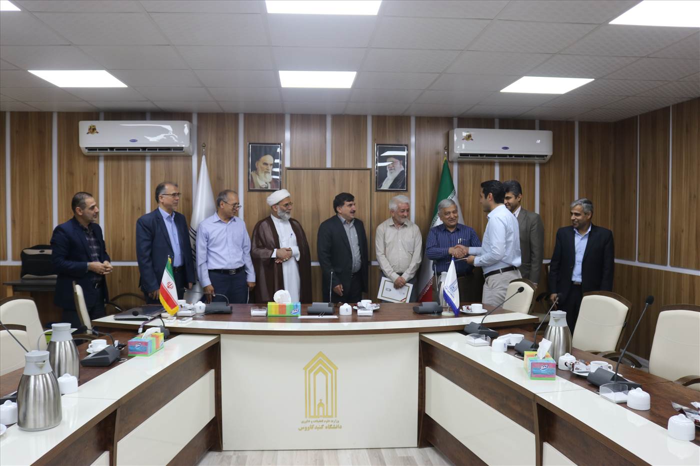 در این جلسه حجت ا.. جعفریان سرپرست دانشگاه از زحمات دلسوزانه و خدمات ارزنده سی ساله دکتر آشورمحمد قره باش تجلیل و دکتر رحمان پاتیمار را به عنوان سرپرست دانشکده علوم کشاورزی و منابع طبیعی منصوب نمودند، در ادامه نیز از زحمات دکتر احمد جلیلی مدیر محترم گروه فناوری اطلاعات و خدمات رایانه ای دانشگاه تقدیر و آقای مهندس حسین منصوری از یاوران علمی دانشگاه را به عنوان سرپرست جدید این حوزه معرفی نمودند.