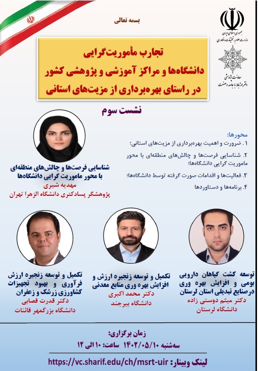 نشست تجارب مأموریت گرایی دانشگاهها و مراکزآموزشی و پژوهشی کشوردر راستاي بهره برداري از مزیتهاي استانی