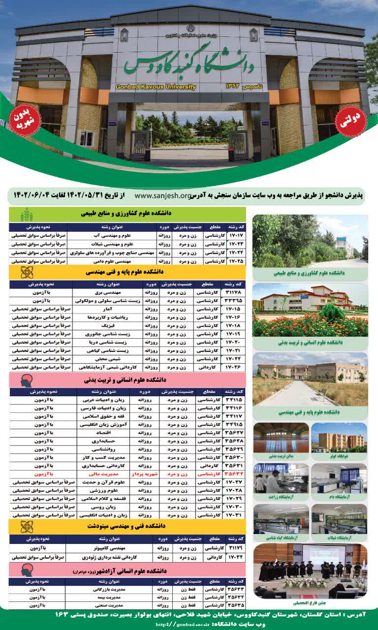 💢معرفی رشته های آزمون سراسری دانشگاه گنبد کاووس