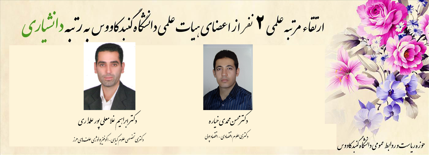 با کمال مسرت، ارتقاء مرتبه علمی شما را به رتبه دانشیاری تبریک عرض می نماییم. شادکامی، سلامت و توفیق روز افزون در تمام عرصه های زندگی و موفقیت در کسب درجات علمی بالاتر را برای شما، از خداوند متعال خواستاریم