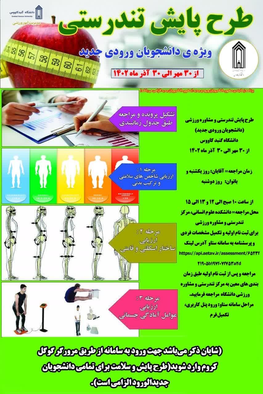 طرح پایش تندرستی و مشاوره ورزشي (دانشجویان ورودی جدید) دانشگاه گنبدكاووس