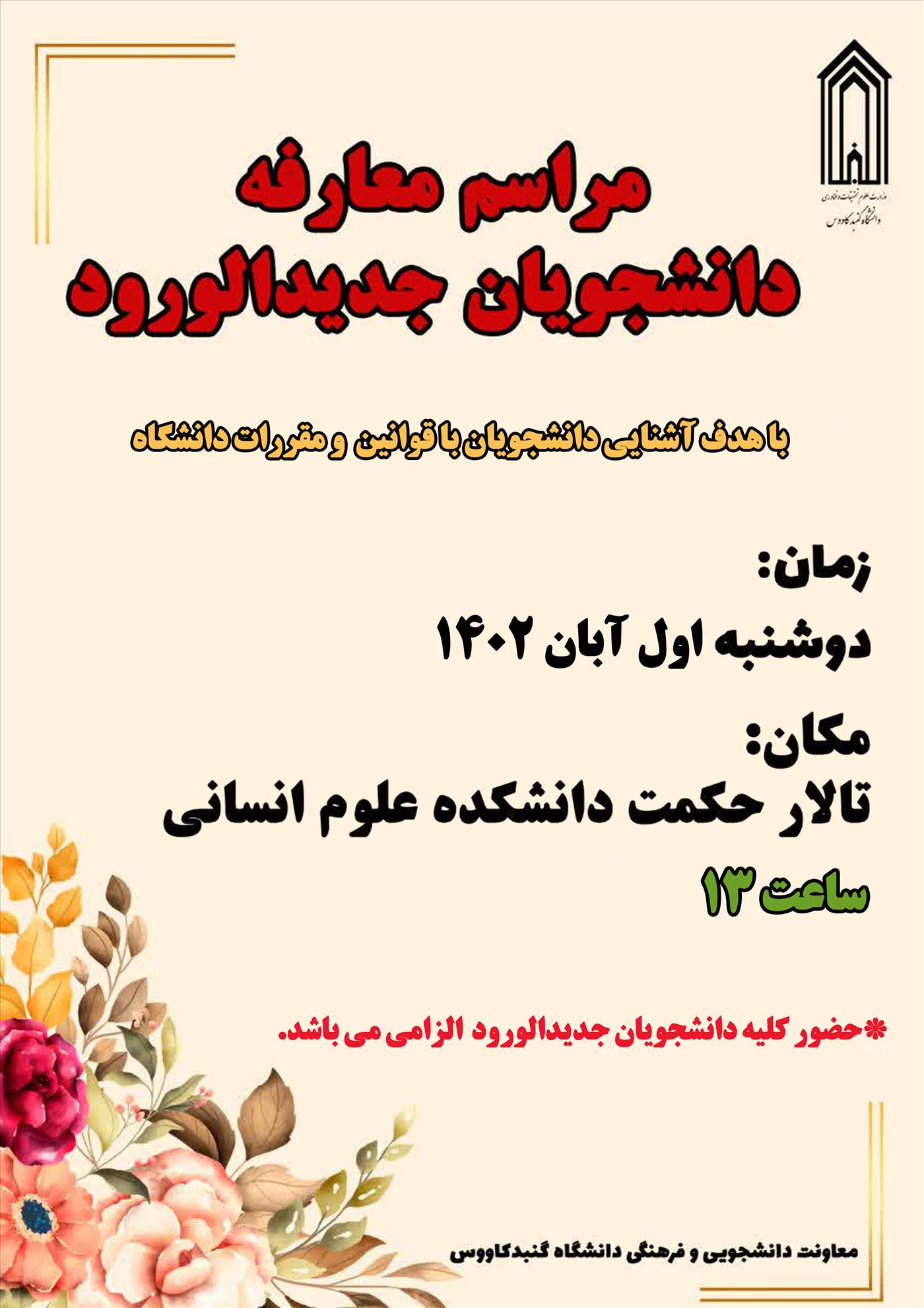 مراسم معارفه دانشجویان جدیدالورود
