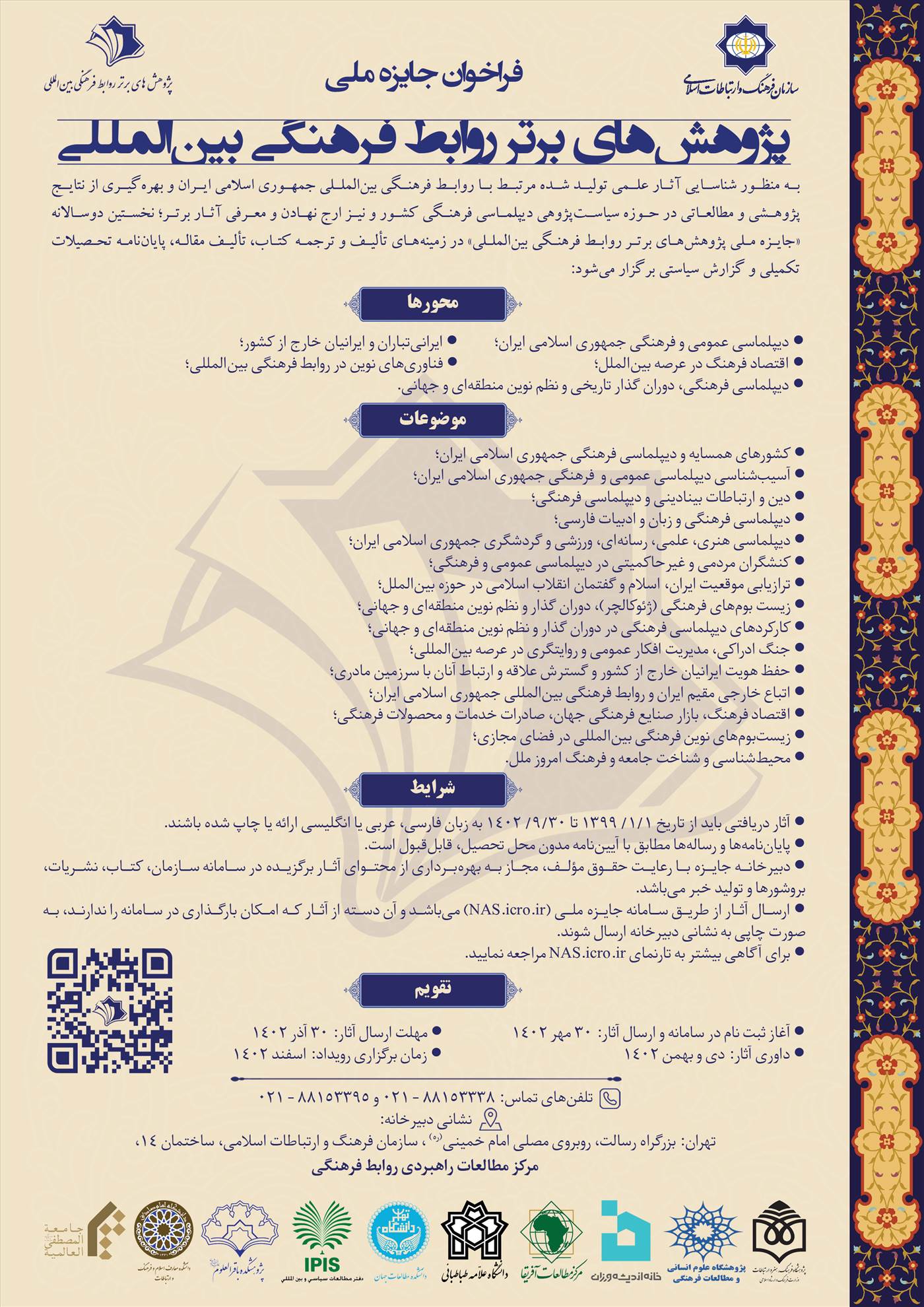 فراخوان جایزه ملی پژوهش های برتر روابط فرهنگی بین الملل