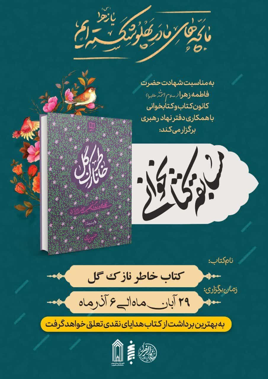 به مناسبت شهادت حضرت فاطمه زهرا(سلام الله علیها) کانون کتاب و کتابخوانی با همکاری دفتر نهاد رهبری برگزار می کند: