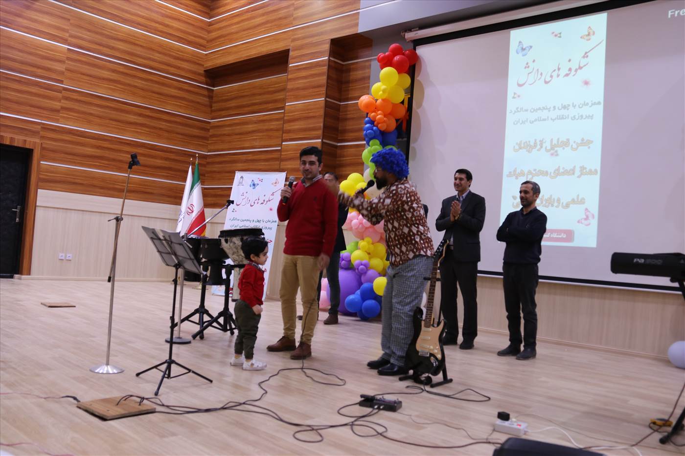 در ادامه برنامه های شاد و متنوع شامل اجرای مسابقات بصورت خانوادگی، استندآب و… برگزار شد و از فرزندان ممتاز اعضای محترم هیات علمی و کارکنان با اهدای هدایایی تجلیل به عمل آمد.