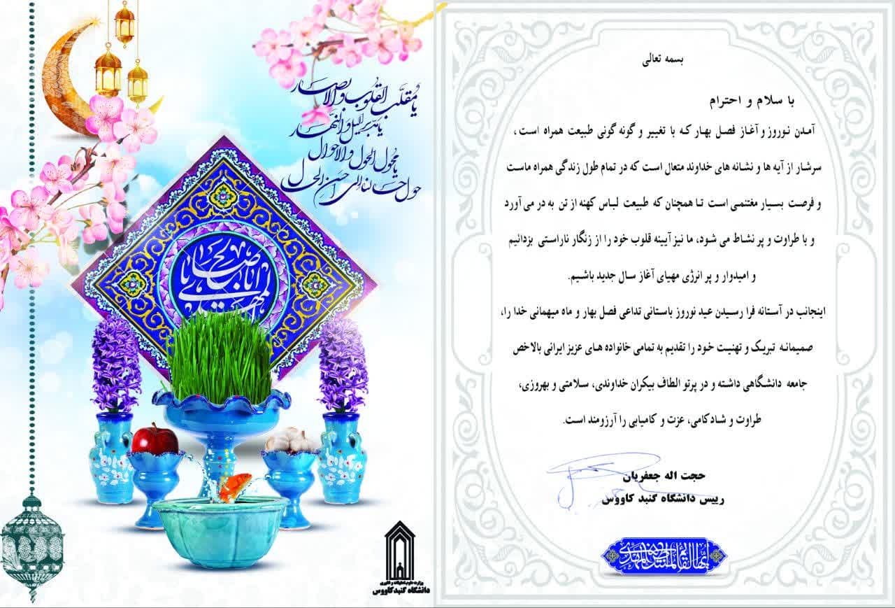 پیام تبریک دکتر جعفریان ریاست دانشگاه گنبد کاووس به مناسبت فرارسیدن نوروز 1403