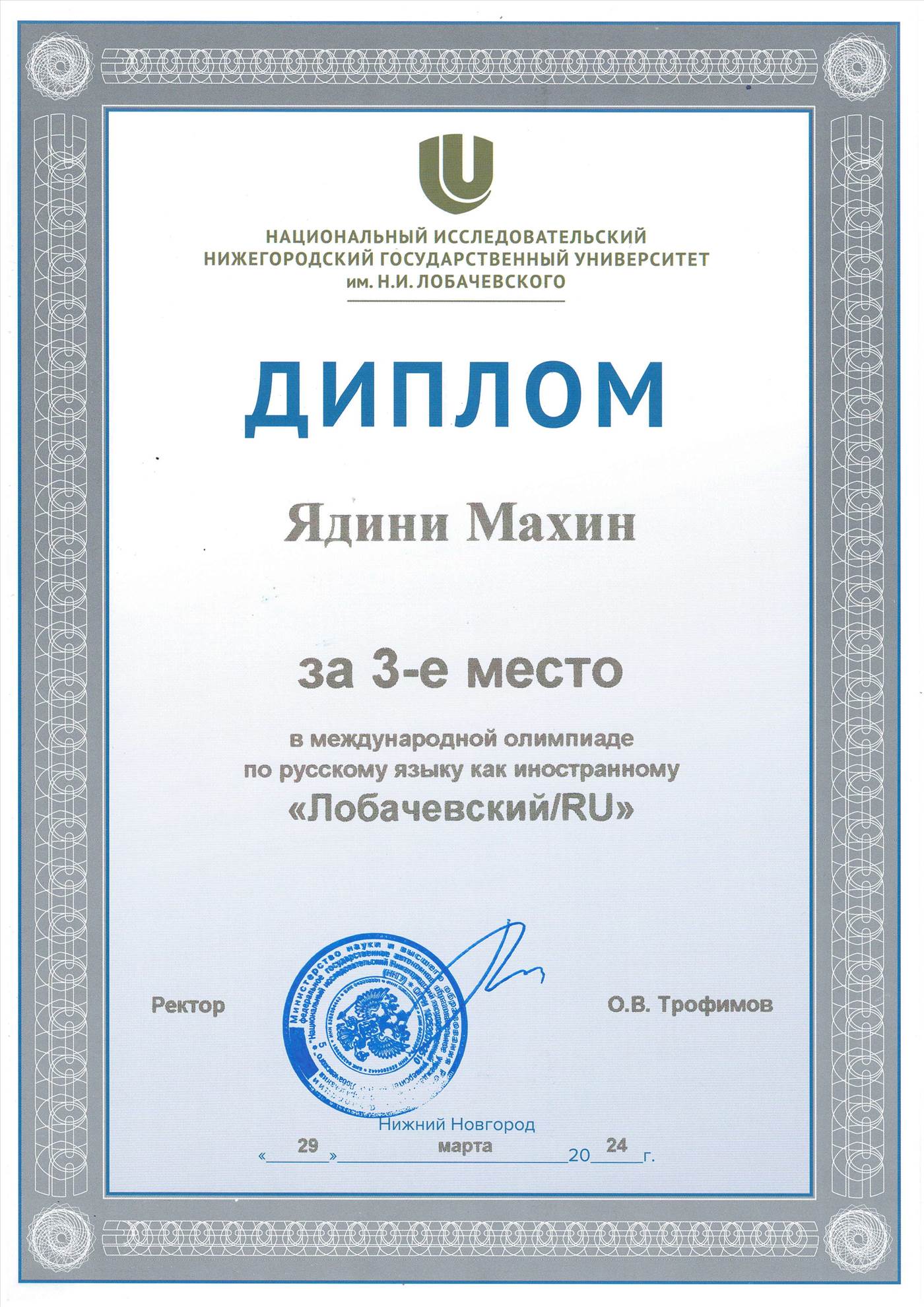مهین یادینی دانشجوی ترم ۸ زبان روسی دانشگاه گنبد کاووس در المپیاد بین المللی زبان روسی با تعداد ۱۷۷۵ نفر که از ۹۴ کشور از جمله کشورهای روس زبان در ان شرکت کرده بودند مقام سوم را کسب کردند . کشور ایران با تعداد ۷۱ شرکت کننده از لحاظ تعداد شرکت کننده در رده ششم قرار داشت. این المپیاد در سوم فرودین ماه ۱۴۰۳ به میزبانی دانشگاه لوباچفسکی کشور روسیه برگزار شد. به برگزیدگان این المپیاد سهمیه بورس تحصیلی در مقطع ارشد دانشگاه لوباچفسکی داده می شود.