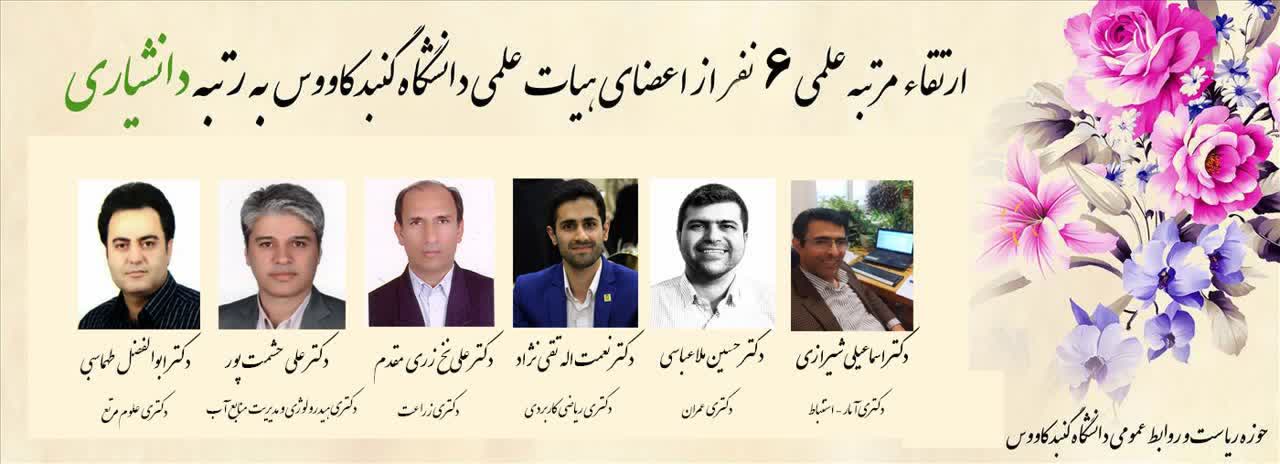 افتخاری دیگر برای جامعه دانشگاهی دانشگاه گنبدکاووس توسط 6 عضو محترم هیات علمی دانشگاه گنبد کاووس با کسب مرتبه دانشیاری