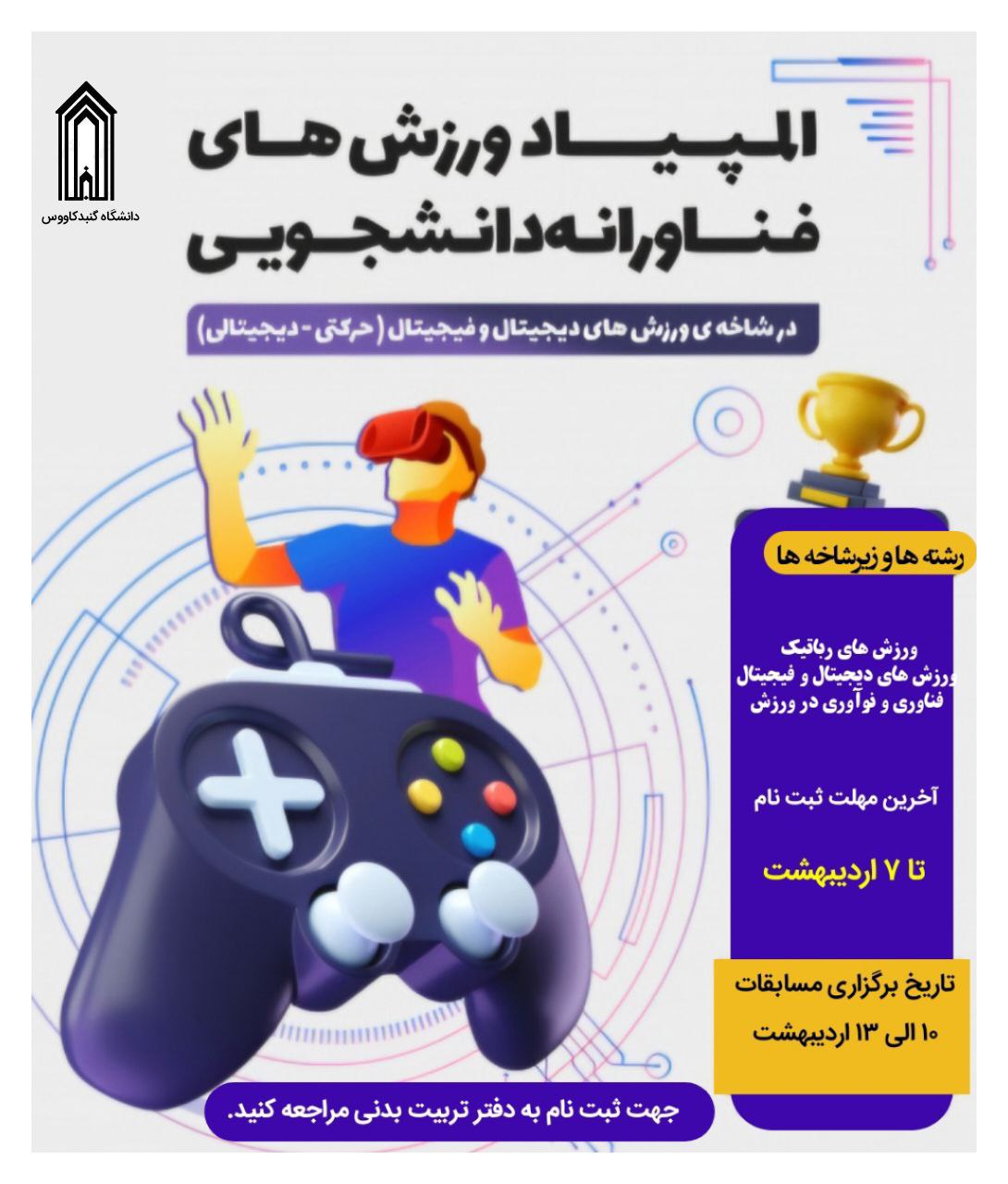 المپیاد ورزش های فناورانه دانشجویی آخرین مهلت ثبت نام ۷ اردیبهشت ۱۴۰۴ جهت ثبت نام به اداره تربیت بدنی دانشگاه مراجعه نمایید.