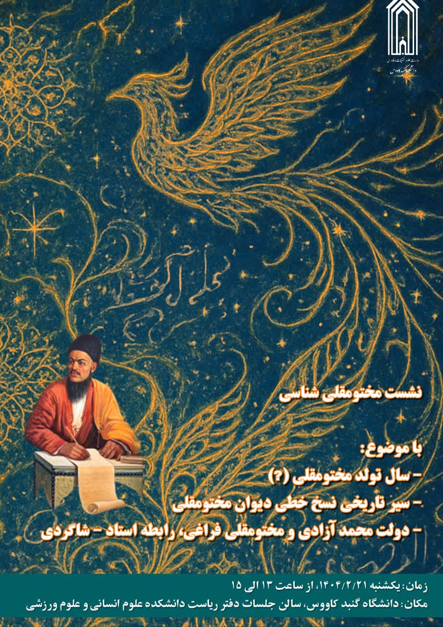 نشست علمی مختومقلی شناسی 🕐 یکشنبه ۲۱ اردیبهشت ماه، ساعت ۱۵_۱۳ 🏢 اتاق جلسات دفتر ریاست دانشکده علوم انسانی