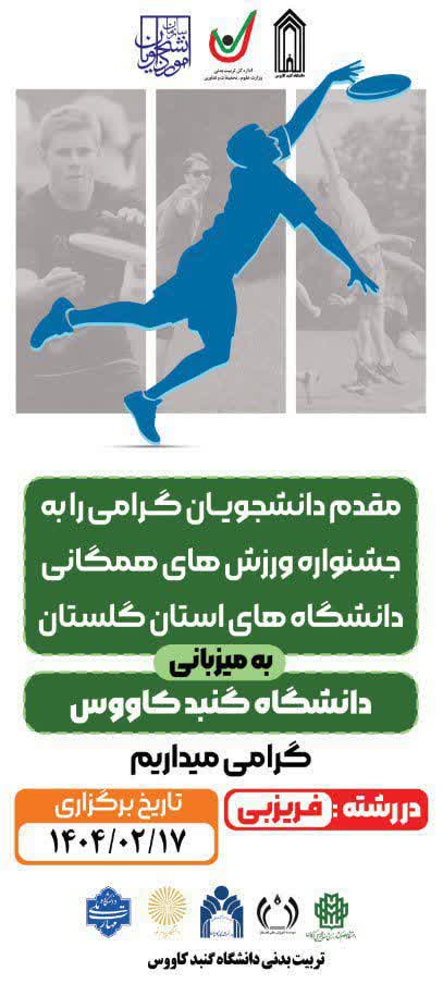 برگزاری مسابقه فریزبی مرحله استاني، انتخابی هفتمين المپیاد همگاني به میزبانی دانشگاه گنبد کاووس مورخ 1404/02/17 برگزار گردید.
