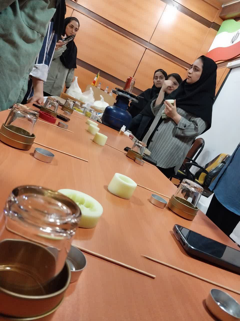 در این کارگاه، شرکتکنندگان با مواد اولیهی مورد استفاده در شمعسازی از جمله پارافین، رنگهای مخصوص، اسانسهای معطر و انواع قالبها آشنا شدند و با راهنمایی مدرس، نمونههایی از شمعهای تزئینی و معطر را به صورت عملی ساختند.