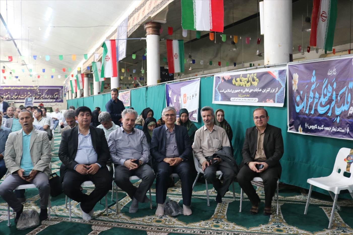 حضور ریاست دانشگاه گنبدکاووس به همراه اعضای محترم هیات رئیسه، اعضای محترم هیات علمی و کارکنان شریف دانشگاه در همایش ارایه گزارش عملکرد سالانه و نشست وحدت در راستای تحول شهرستان از سوی نماینده محترم شهرستان در مجلس شورای اسلامی (جناب آقای دکتر عبدالحکیم آق ارکاکلی) در روز یکشنبه مورخ 1404/03/11 واقع در مصلی امام جعفر صادق (ع) شهرستان گنبدکاووس.