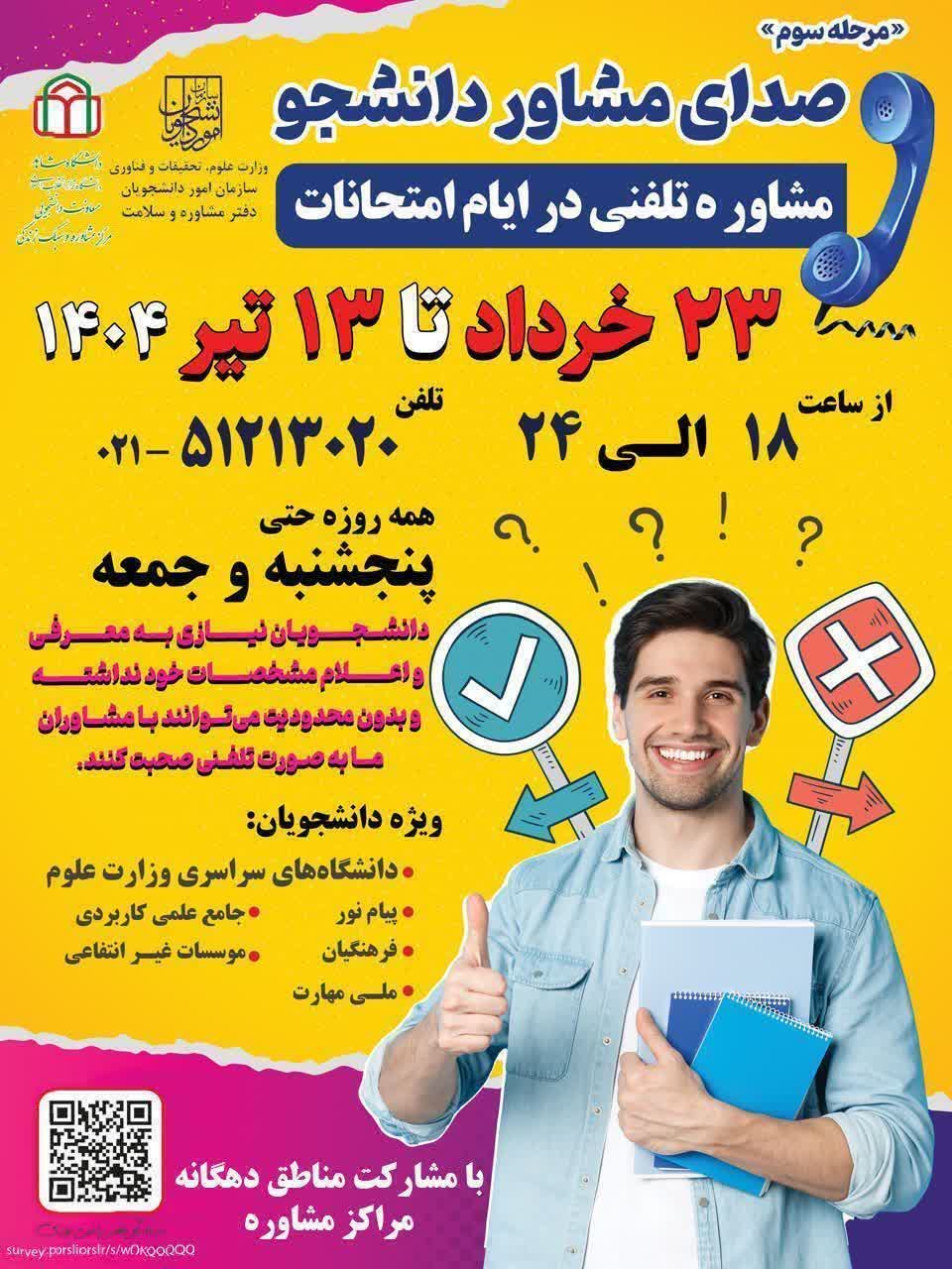 ☎️اگر در این ایام نیاز به مشاوره دارید با "صدای مشاور دانشجو" تماس بگیرید "تا پایان امتحانات، همراه شما هستیم."