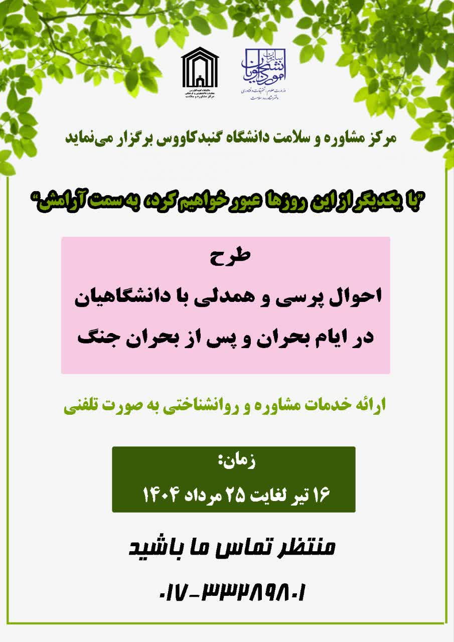 مرکز مشاوره و سلامت دانشگاه گنبدکاووس برگزار می کند