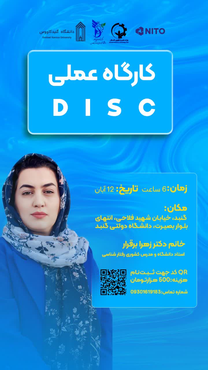برگزاری دورههای مهارت افزایی و دانش افزایی دانشجویی، کارگاه عملی" دیسک" به مدت 6 ساعت، مورخ 12 آبان ماه از ساعت 9 الی 16 با تدریس استاد گرانقدر سرکار خانم دکتر زهرا برقرار در سالن شهید مطهری دانشکده علوم کشاورزی و منابع طبیعی دانشگاه گنبد کاووس برگزار میگردد. شایان ذکر است دانشجویان دانشگاه گنبد کاووس از کد تخفیف 50 درصدی برخوردار خواهند بود.