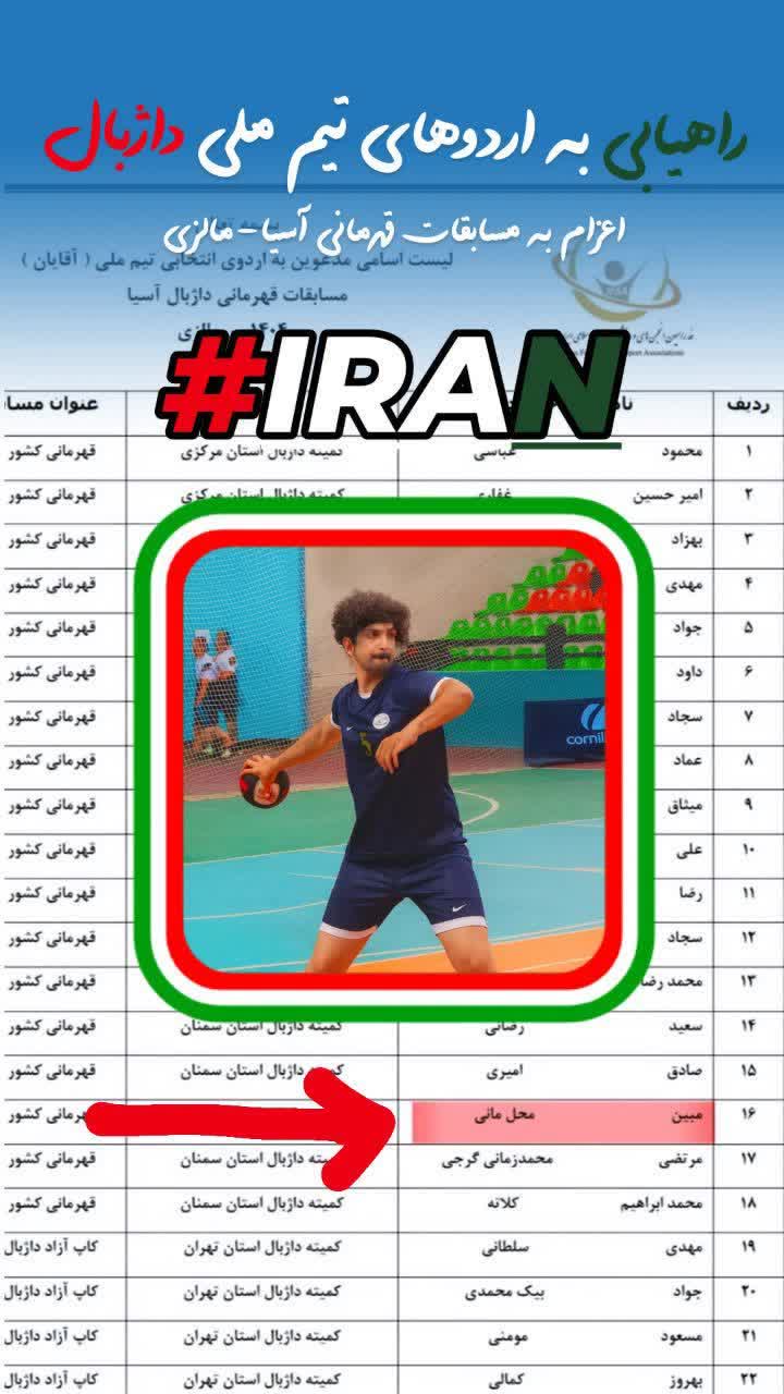 راهیابی جناب آقای مبین محل مانی دانشجوی دانشگاه گنبدکاووس به اردوهای تیم ملی داژبال جهت اعزام به مسابقات قهرمانی آسیا - مالزی