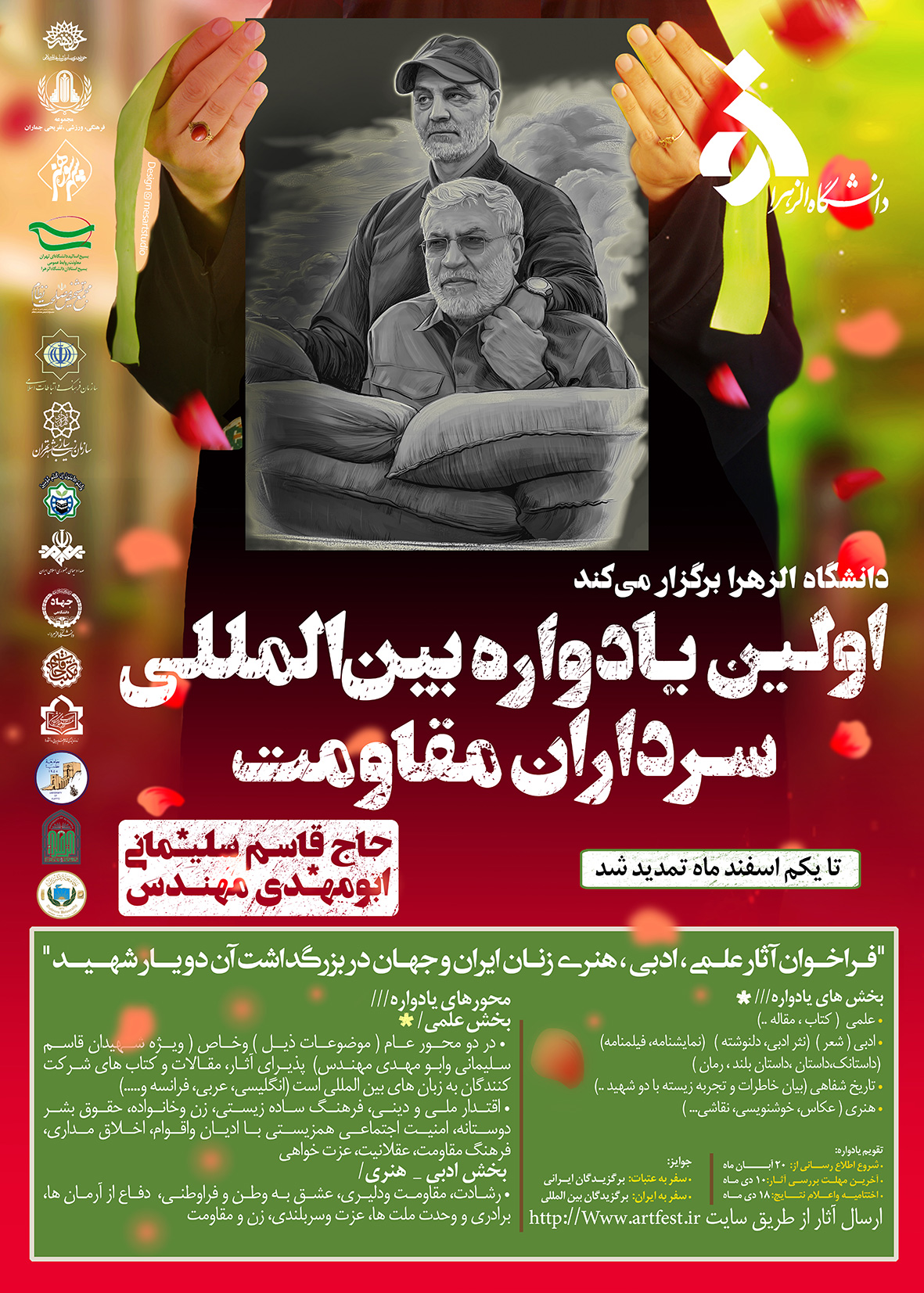 اولین یادواره علمی - فرهنگی (ادبی - هنری) زنان ایران و جهان در بزرگداشت سرداران مقاومت حاج قاسم سلیمانی، ابو مهدی المهندس از سوی دانشگاه الزهرا با همکاری حوزه هنری و مراکز علمی - فرهنگی داخلی و بینالمللی، اسفند ماه ۹۹ برگزار میشود.