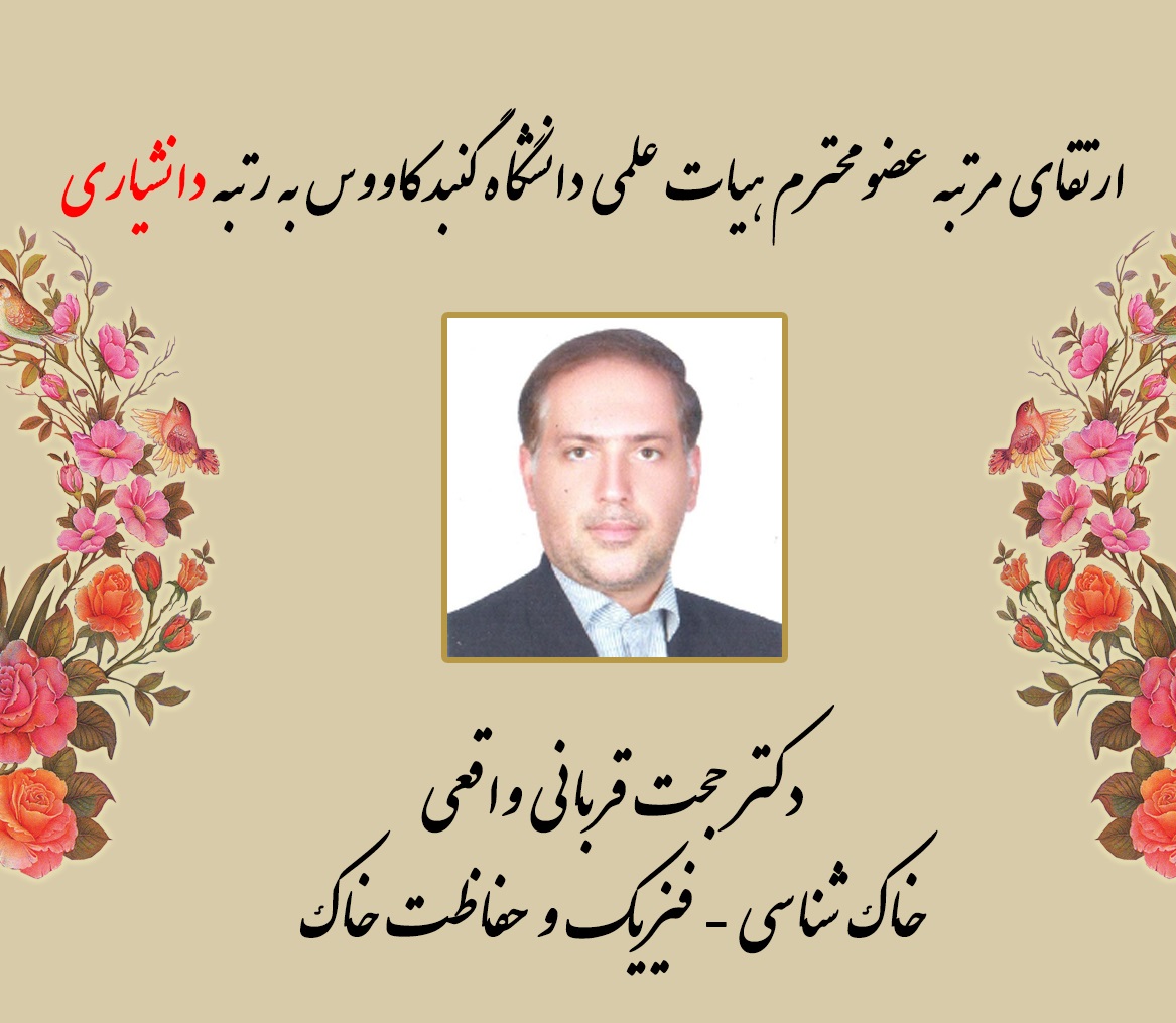 ارتقاء مرتبه علمی عضو محترم هیات علمی دانشگاه گنبدکاووس به رتبه دانشیاری