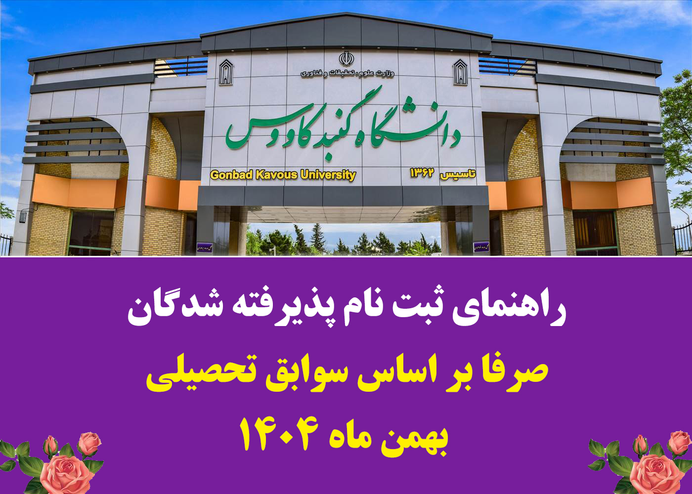 ضمن تبریک به کلیه پذیرفته شدگان بهمن ماه دانشگاه گنبد کاووس به استحضار میرساند: