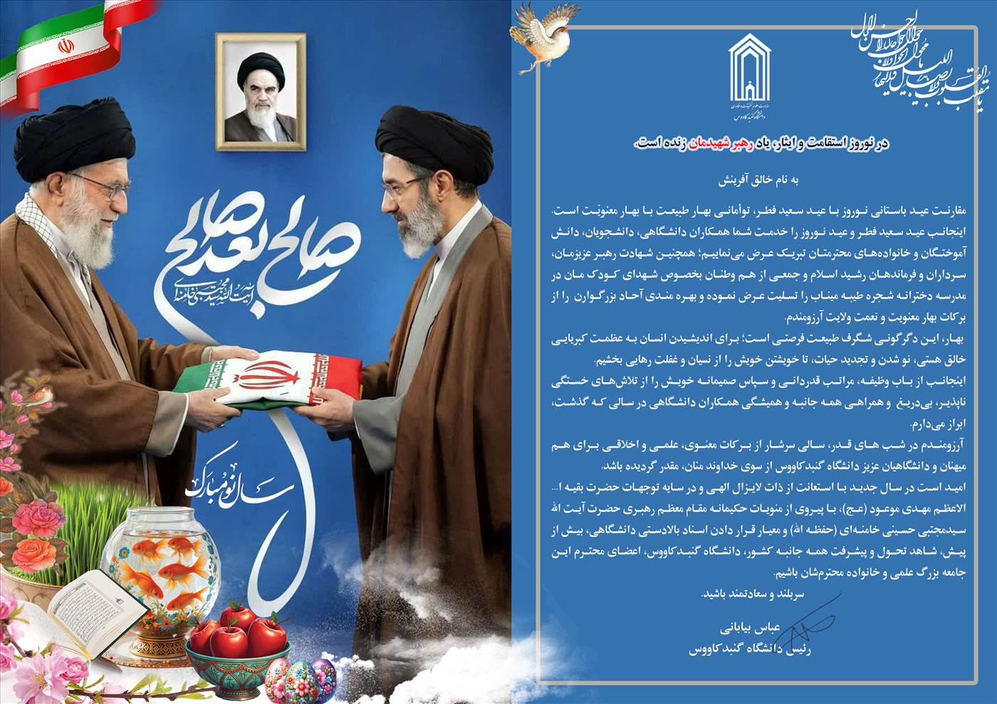 پیام تبریک رئیس دانشگاه گنبدکاووس به مناسبت آغاز سال جدید 1405