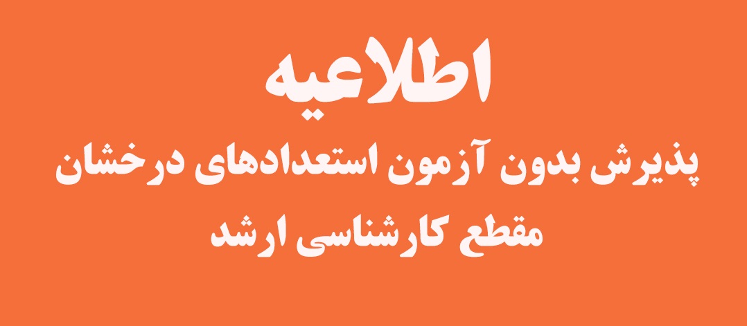 💢به اطلاع دانشجویان گرامی می رساند دانشگاه میبد در نظر دارد به استناد آیین نامه وزارت علوم، تحقیقات و فناوری برای نیمسال اول سال تحصیلی ۱۴۰۶_۱۴۰۵ نسبت به پذیرش بدون آزمون استعدادهای درخشان در مقطع کارشناسی ارشد از میان داوطلبان واجد شرایط اقدام نماید. جهت کسب اطلاعات بیشتر به نشانی زیر مراجعه نمایید